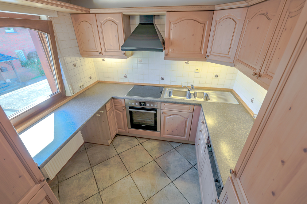 • Essbereich & Küche: Auf der nächsten Ebene (1. Obergeschoss) erwarten Sie der lichtdurchflutete Essbereich mit angrenzender Küche, zwei Abstellräume (davon einer besonders großzügig) sowie ein großer Balkon.