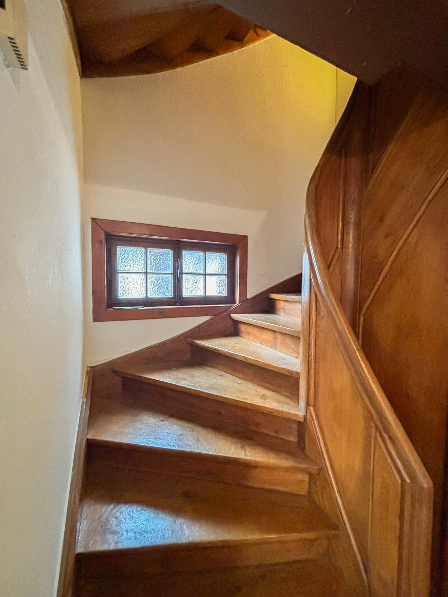 Im Inneren erwartet Sie eine gemütliche Wohnatmosphäre, die durch sichtbare Holzbalkenelemente in einigen Räumen des Erdgeschosses zusätzlich unterstrichen wird. Die Etagen sind über eine schöne, alte Holztreppe miteinander verbunden. Das Wohnzimmer bildet das Herzstück des Hauses – hier sorgt ein Kaminofen an kühleren Tagen für wohlige Wärme und schafft eine behagliche Stimmung. Ergänzt wird die Wärmeversorgung durch eine moderne Gastherme, die erst 2020 erneuert wurde. Das Badezimmer präsentiert sich in einer angenehmen Größe und ist in einem zeitlos-neutralen Stil gehalten, sodass es problemlos an individuelle Gestaltungsvorlieben angepasst werden kann. Ein weiterer Pluspunkt: Im Dachgeschoss besteht die Möglichkeit, zusätzlichen Wohnraum zu schaffen – ideal für ein weiteres Schlafzimmer. Zu beachten ist, dass die Deckenhöhe in einigen Wohnräumen teilweise nur etwa 2 Meter beträgt, was jedoch dem wohnlichen Charakter keinen Abbruch tut.