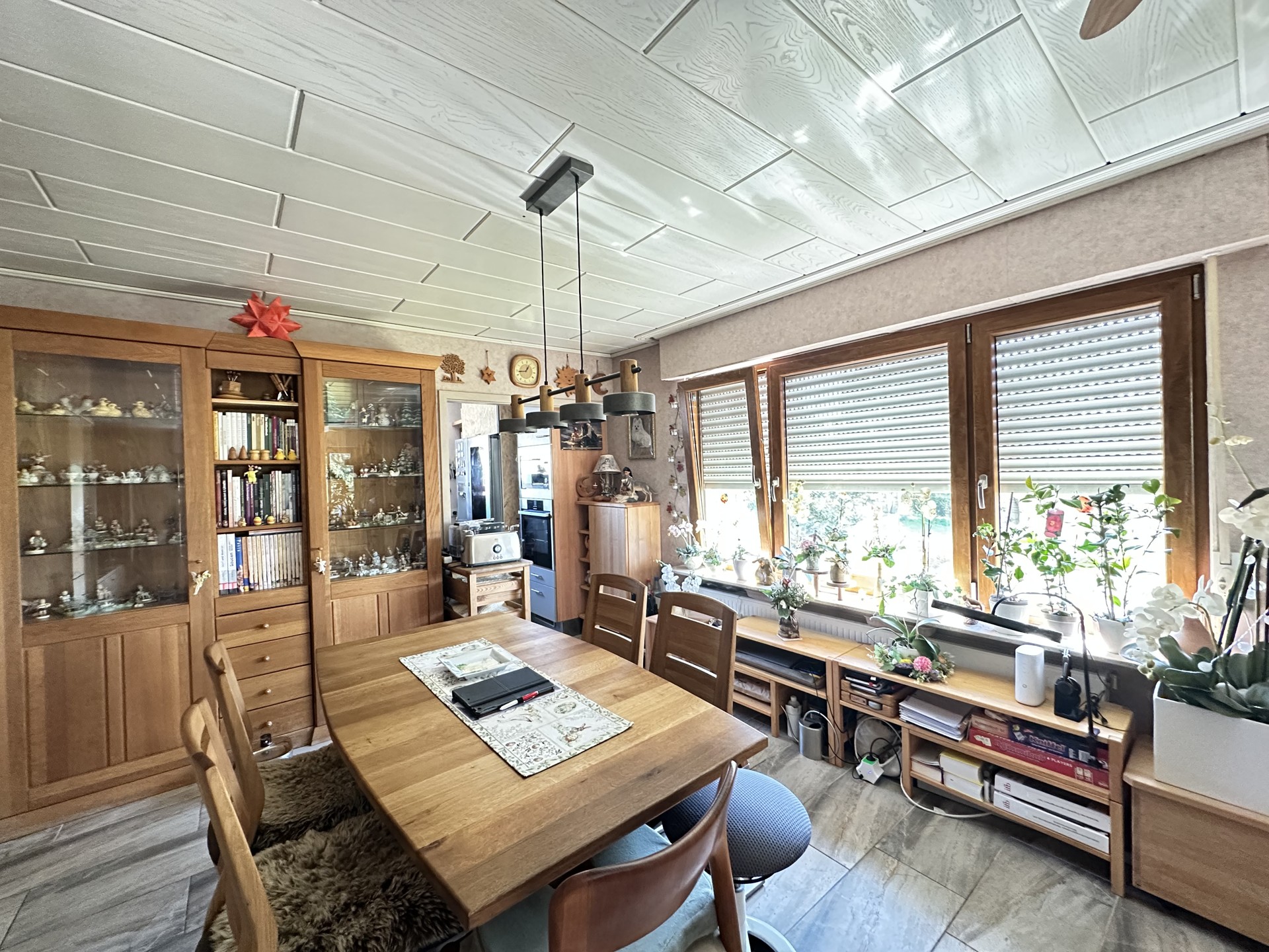 Dieses einladende Wohnhaus im beliebten Bungalowstil der renommierten Firma Fingerhut bietet den idealen Rückzugsort für Paare, die Wert auf Ruhe und Wohnkomfort legen. Nach dem Erwerb wurde das Objekt durch die Eigentümer renoviert und präsentiert sich heute in einem gepflegten Zustand. Das modernisierte Badezimmer verfügt bereits über eine Dusche mit flacher Einstiegshöhe. Herzstück des Hauses ist der großzügige Wohn- und Essbereich, von dem aus Sie direkten Zugang zur sonnigen Terrasse haben. Von hier genießen Sie den Ausblick auf das weitläufige, pflegeleicht angelegte Grundstück, das durch einen Zaun eingefriedet ist. Ein Gartenhaus eröffnet vielfältige Nutzungsmöglichkeiten. Im Untergeschoss stehen Ihnen zusätzliche Nutz- und Abstellflächen sowie eine praktische Waschküche mit Toilette und Waschbecken und ein Gästezimmer zur Verfügung. Abgerundet wird das attraktive Gesamtbild durch zwei Garagen, die ausreichend Platz für Ihre Fahrzeuge bieten. Dieses gemütliche Zuhause überzeugt mit einer guten Raumaufteilung und einer Umgebung, in der man sich sofort wohlfühlt. Es eignet sich ideal für Paare, die auf der Suche nach einem im Erdgeschoss ebenerdigen Zuhause mit viel Platz im Innen- und Außenbereich sind.