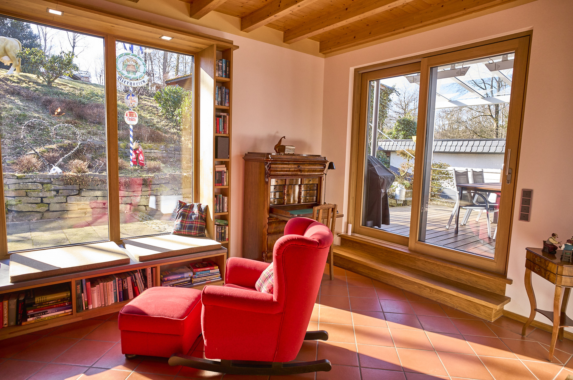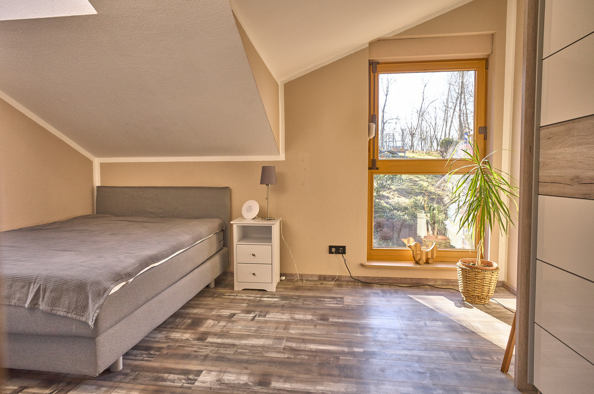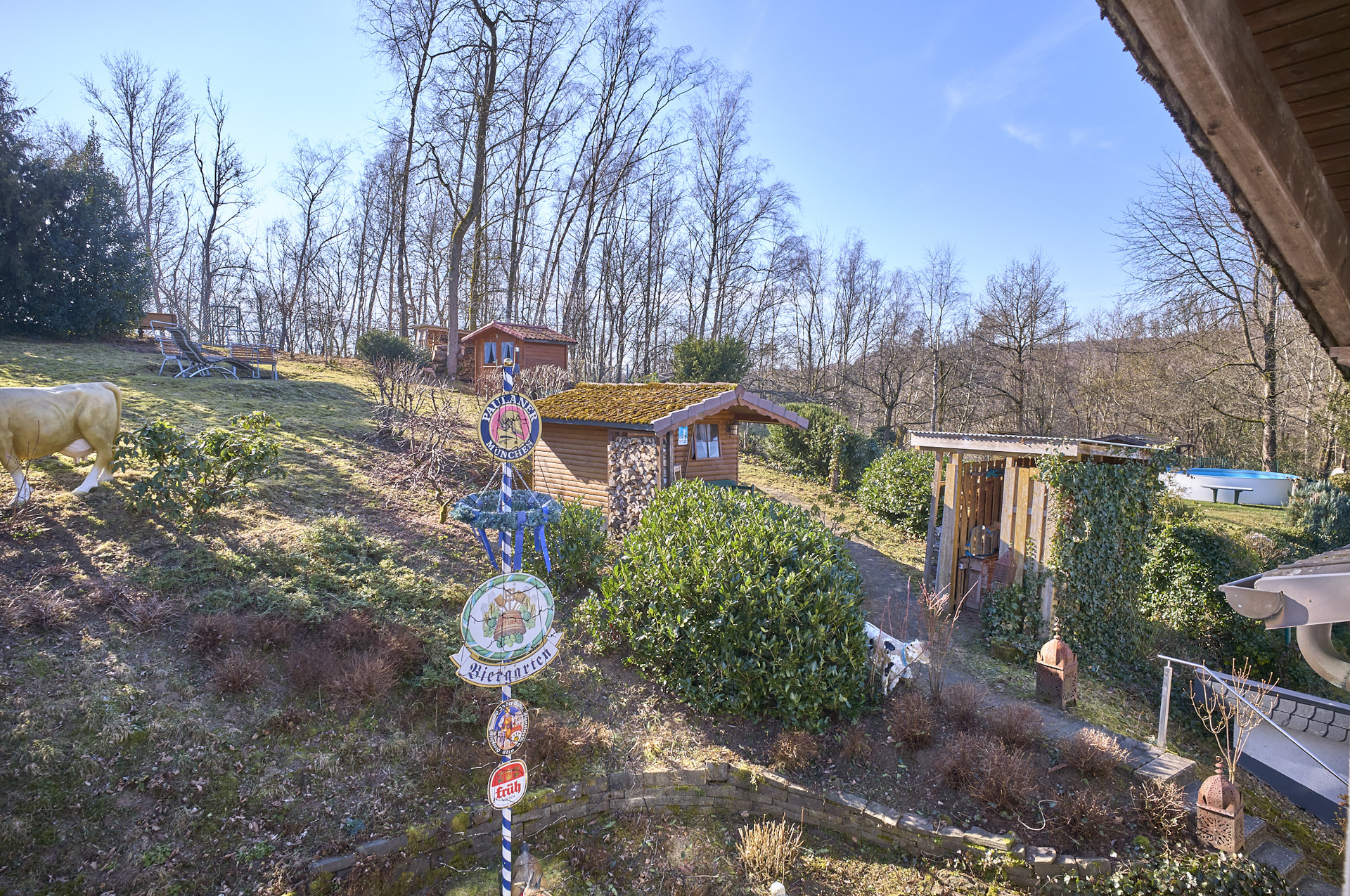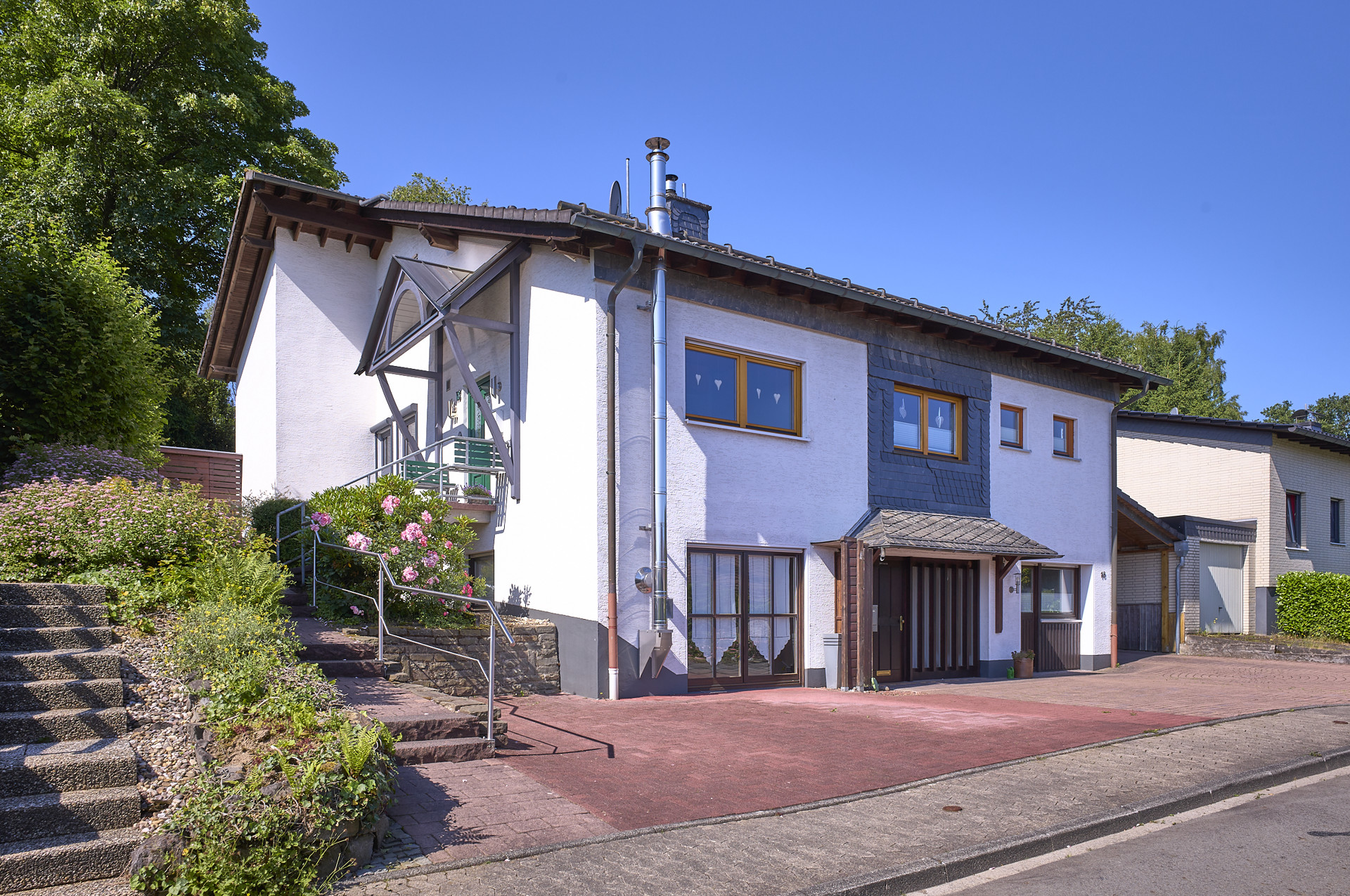 Dieses große Einfamilienhaus mit einer Einliegerwohnung, Garage und Carport wurde 1978 als Massivhaus auf einem ca. 1064 m² großen Grundstück erbaut. Eine Erweiterung durch einen Anbau und eine grundlegende Renovierung wurden 1999 durchgeführt. Das Haus verfügt über insgesamt zehn Zimmer. Im Untergeschoss befindet sich die schöne Einliegerwohnung (frei) mit drei Zimmern, Küche, Diele, Bad, und Gäste-WC. Die Hauptwohnung bietet Ihnen im Erdgeschoss drei Zimmer, einen Hauswirtschaftsraum, ein Bad, eine moderne, hochwertige Küche mit Essplatz sowie ein schönes Wohnzimmer mit Zugang zur Terrasse und zur Wiese. Im Dachgeschoss sind drei weitere Räume, ein Duschbad und ein Abstellraum untergebracht. Eine Sauna befindet sich ebenfalls auf dieser Etage! Die moderne Gas-Hybrid-Heizung wurde 2022 installiert. Im Winter verwöhnen Sie ein Kaminofen am Essplatz im Erdgeschoss und ein Kaminofen in der ELW. Das Haus ist durch die Größe und die Aufteilung auch als Mehrgenerationenhaus geeignet. Die ruhige Sackgassenlage, der Ausblick in die Ferne und die Nähe zu den Weiden und Wäldern bieten Ihnen eine Oase der Entspannung.