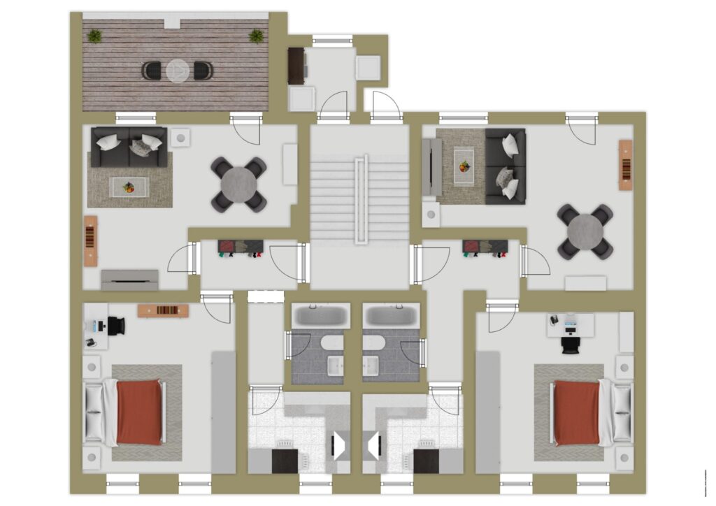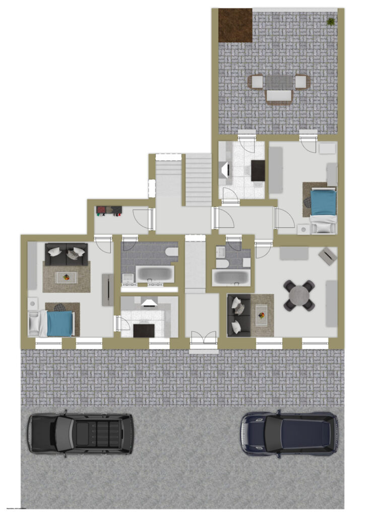 – Dachgeschoss: Möglichkeit zur Schaffung einer ca. 100 m² Wohnung oder zweier Einheiten à 50 m²