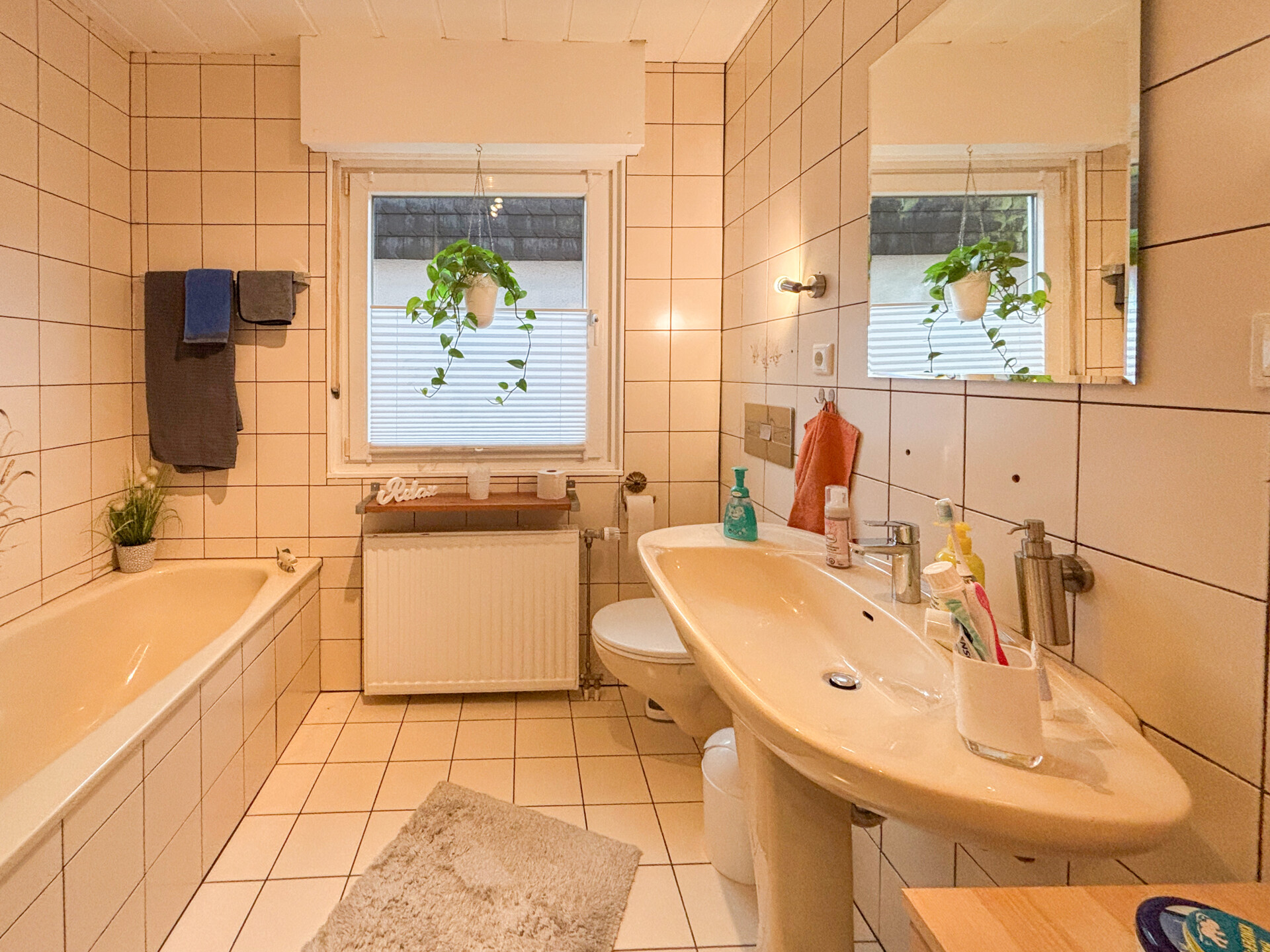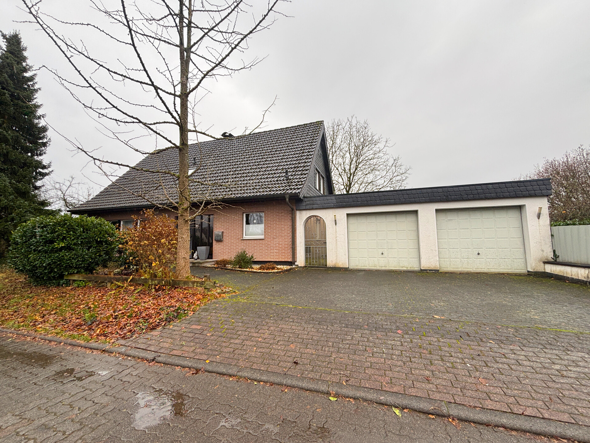 Dieses gepflegte Zweifamilienhaus aus solider Fertigteilbauweise, erbaut um 1980, verfügt über rund 180 m² Wohnfläche und insgesamt fünf Zimmer, die sich auf das Erd- und Dachgeschoss verteilen. Es eignet sich hervorragend als Mehrgenerationenhaus oder für Familien, die viel Platz benötigen. Im Kellergeschoss stehen neben dem Heizungsraum drei große Abstellräume zur Verfügung, die reichlich zusätzlichen Stauraum bieten. Im Erdgeschoss erwartet Sie ein harmonisch gestalteter Wohn- und Essbereich mit gemütlichem Kamin und direktem Zugang zur weitläufigen Terrasse und dem Garten. Außerdem befinden sich hier eine Küche, zwei Schlafzimmer, ein Badezimmer sowie ein Gäste-WC. Das Dachgeschoss bietet ein Durchgangszimmer sowie zwei weitere großzügige Räume und ein zusätzliches Bad, sodass auch hier viele Nutzungsmöglichkeiten bestehen. Rund um das Jahr 2000 wurde das Haus umfassend saniert; Heizung und Fenster wurden in den folgenden Jahren sukzessive erneuert. Vor dem Haus stehen Ihnen mehrere Stellplätze sowie eine Doppelgarage zur Verfügung. Lassen Sie sich von den vielfältigen Möglichkeiten und dem charmanten Charakter dieses gepflegten Zweifamilienhauses begeistern!