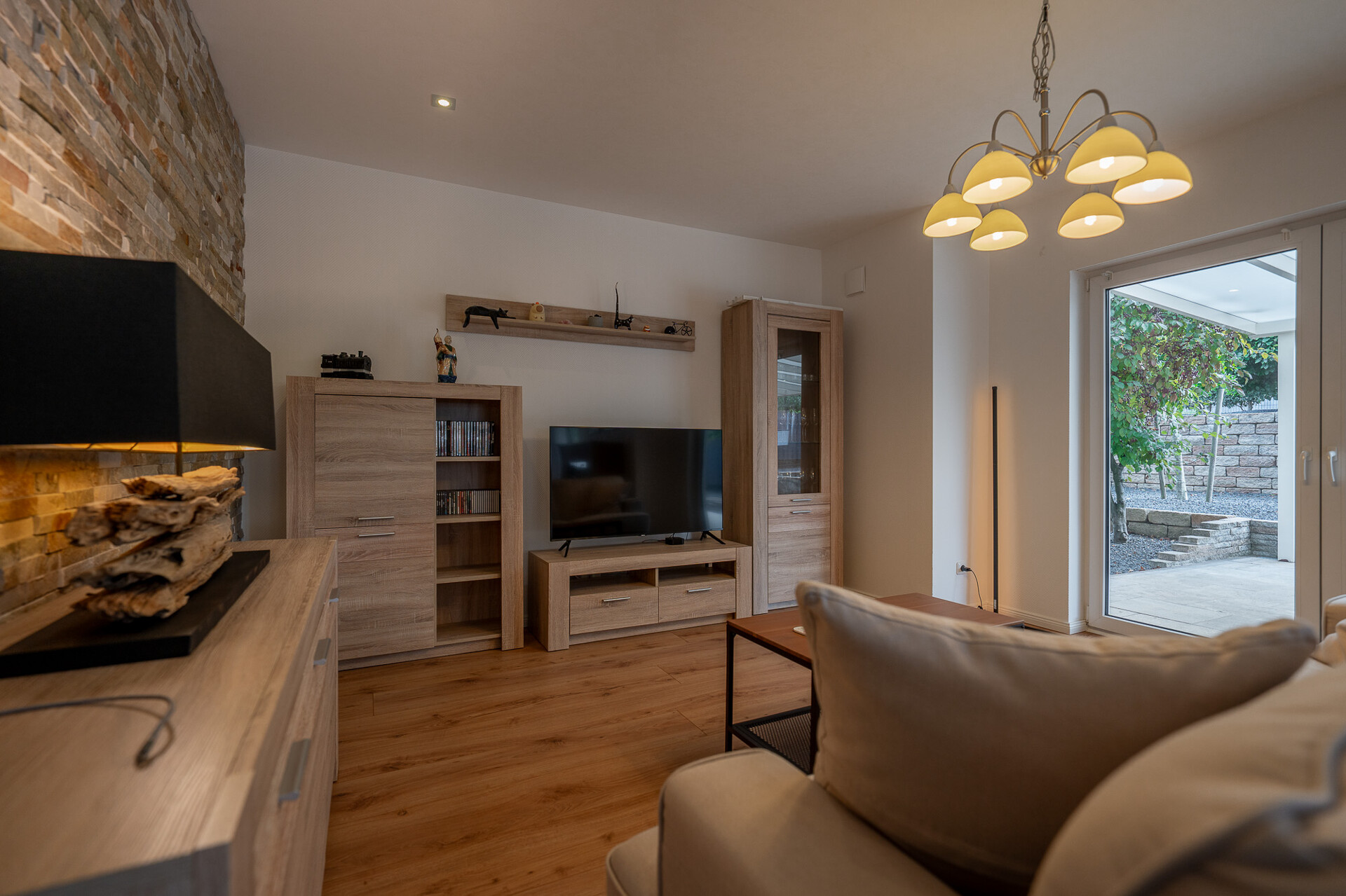Das Herzstück des Hauses ist der großzügige Wohn-, Ess- und Kochbereich. Sonnenlicht flutet die Räume, große Fenster öffnen sich zur überdachten Süd-Terrasse und dem Garten – ein Ort, an dem Sie jeden Tag spüren, wie Wohnträume wahr werden. Ob entspanntes Frühstück, gesellige Abende oder ruhige Momente mit Blick ins Grün: Hier lebt es sich leicht, unbeschwert und voller Energie.