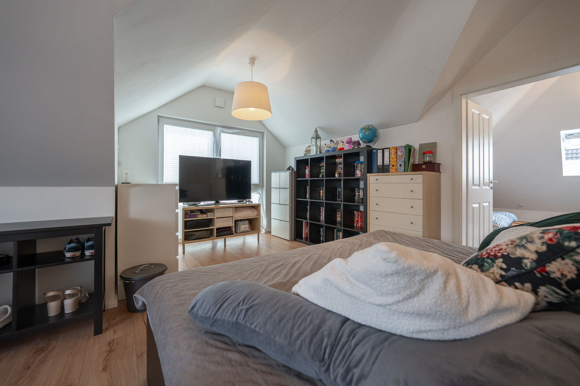 Das Dachgeschoss begeistert mit einer hellen Galeriefläche, die als Atelier, Arbeitsbereich oder Leseecke genutzt werden kann. Ein zusätzliches Schlafzimmer bietet Raum für Ruhe und Privatsphäre, während clever integrierte Stauflächen Ordnung schaffen, ohne den Wohncharakter zu beeinträchtigen.