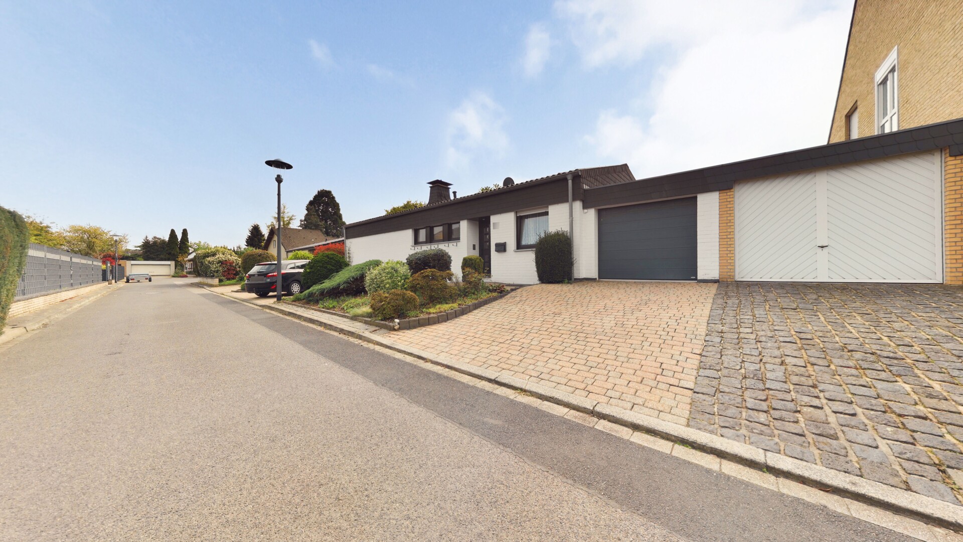 Dieser im Jahr 1973 in solider Massivbauweise errichtete Bungalow vereint zeitlose Architektur mit dem begehrten Komfort des barrierearmen Wohnens auf einer Ebene. Auf einem ca. 711 m² großen Grundstück in einer ruhigen, gewachsenen Wohnstraße gelegen, besticht die Immobilie durch ein äußerst gepflegtes Gesamtbild und eine durchdachte Raumstruktur. Schon beim Annähern an das Objekt vermittelt die gepflegte Nachbarschaft ein Gefühl von hoher Lebensqualität. Die großzügige Einfahrt mit integrierter Garage, der separate Stellplatz und das rund um das Haus hochwertig erneuerte Altstadtpflaster unterstreichen den wertigen Charakter und sorgen für eine ästhetische Gestaltung der Außenflächen.