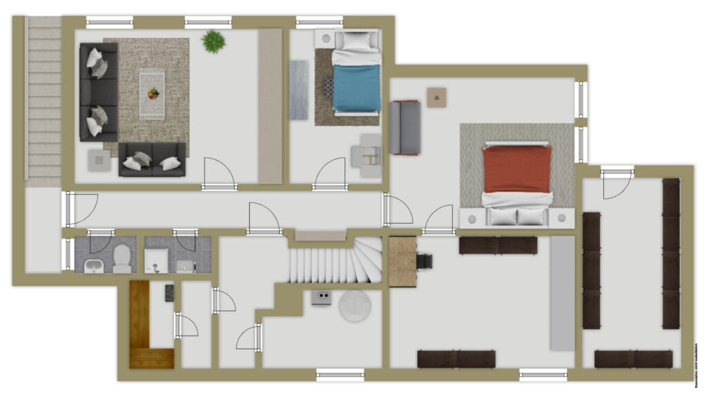 Die Schlafräume auf dieser Ebene bieten vielfältige Nutzungsmöglichkeiten: Während das Elternschlafzimmer durch seine beachtliche Größe, dem eigenen Badezimmer und hervorragende Stauraumlösungen überzeugt, lassen sich die weiteren Zimmer flexibel als Kinder-, Gäste- oder Arbeitszimmer nutzen. Ein besonderer Mehrwert offenbart sich zudem im Souterrain der Immobilie. Neben den klassischen Keller- und Nutzräumen verfügt das Haus hier über einen wohnlich ausgebauten Bereich inkl. Duschbad und WC mit direktem Zugang zum Garten. Dieser Rückzugsort bietet sich ideal als Hobbyraum, separates Reich für Jugendliche oder als ruhiges Home-Office an.