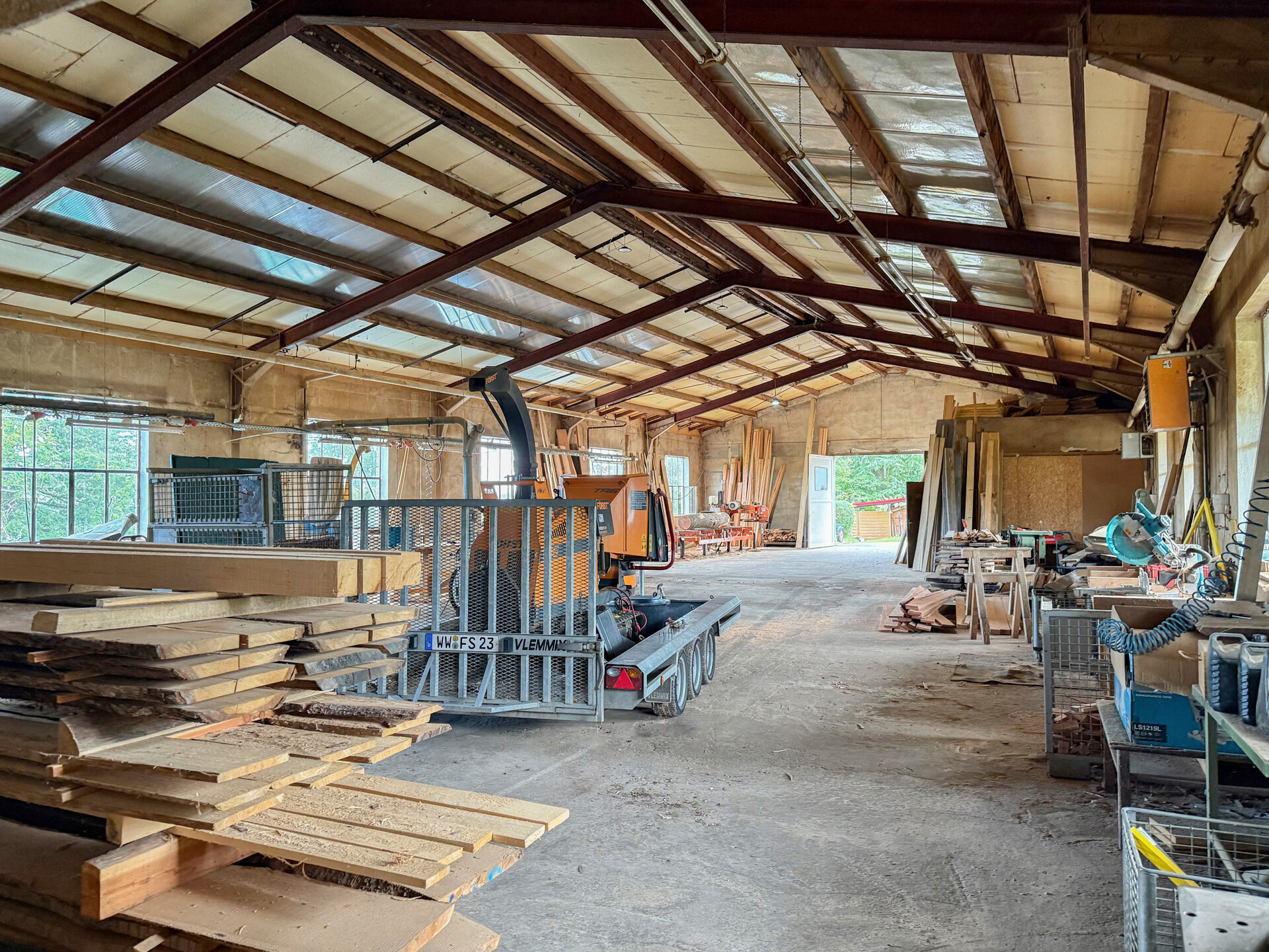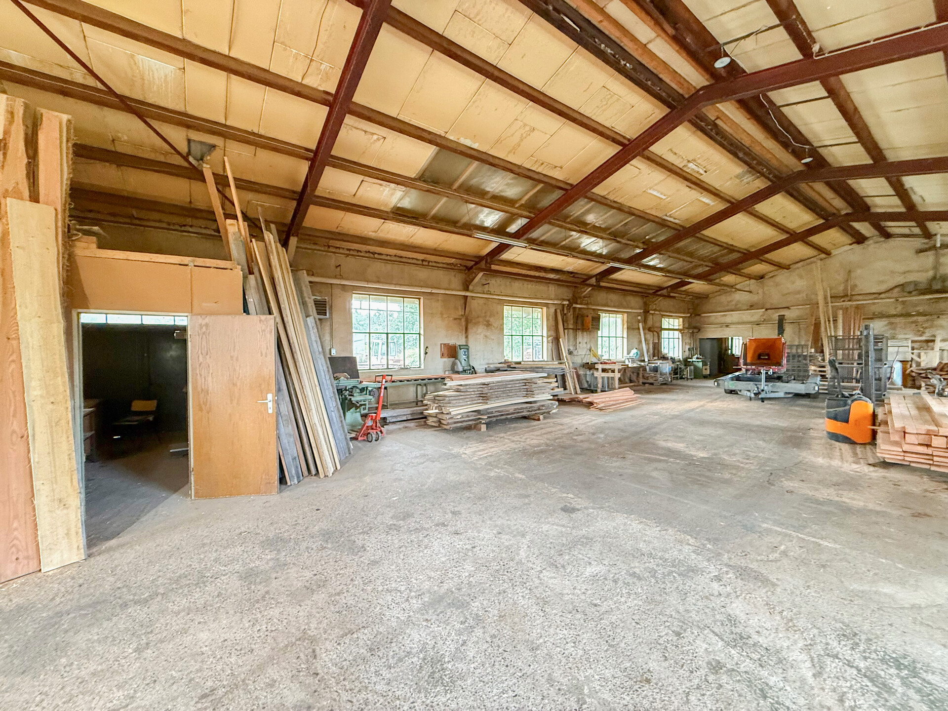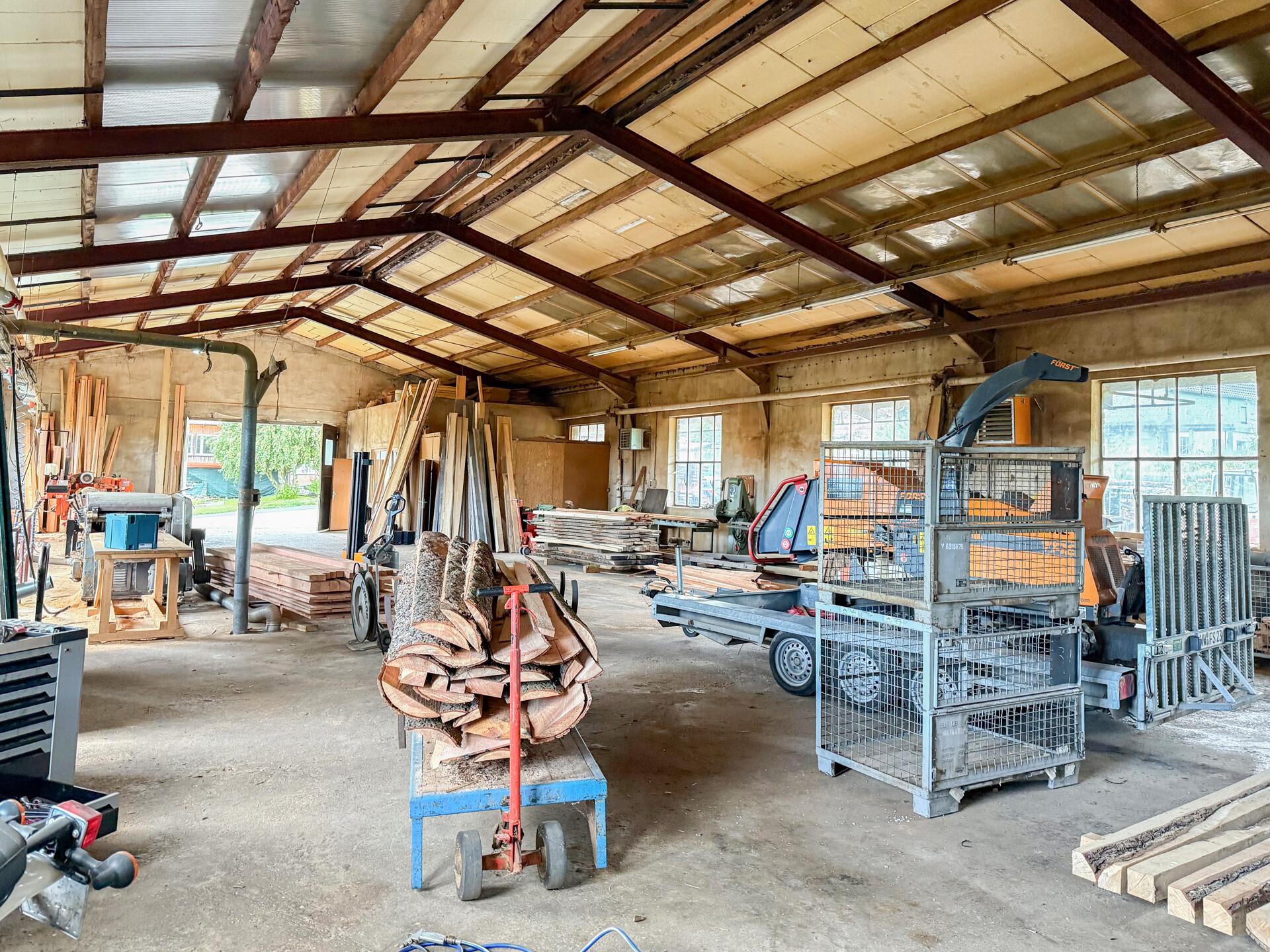 Diese massiv errichtete Gewerbehalle verfügt über eine überdachte Holzlagerfläche von 48 m², ein Schwingtor mit 3 m Höhe und eine Hallenhöhe von 6 m, wodurch auch das Befahren mit größeren Fahrzeugen möglich ist. Zusätzlich steht ein Lagerplatz von ca. 1.000 m² zur Verfügung.