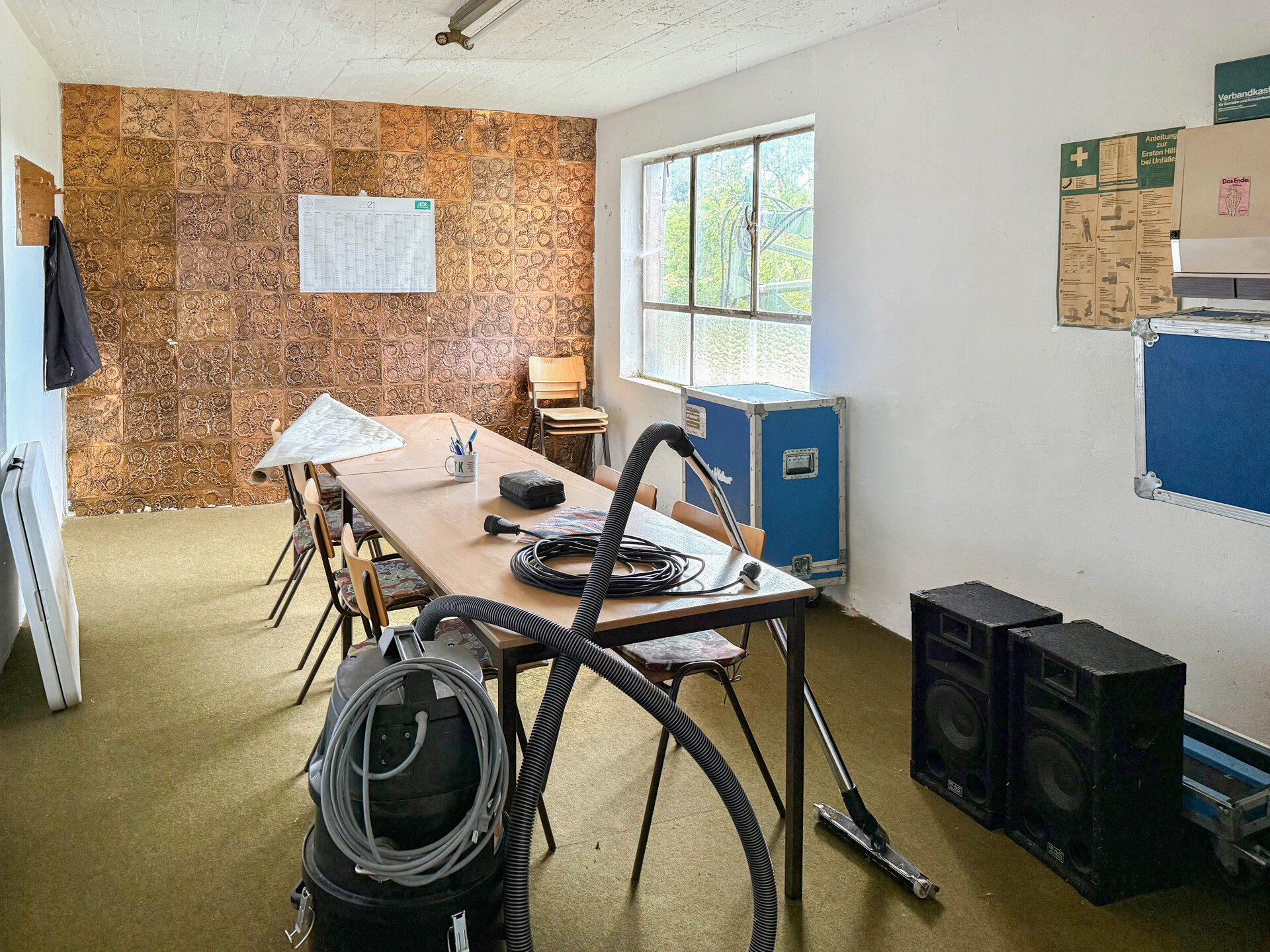 Im Erdgeschoss befindet sich ein separates Büro, ideal geeignet, um Kunden zu empfangen. Das Kellergeschoss ist mit einem Aufenthaltsraum für Mitarbeiter, einem Wasch – und Umkleideraum, sowie sanitären Anlagen ausgestattet. Pkw-Stellplätze stehen direkt vor dem Objekt bereit.