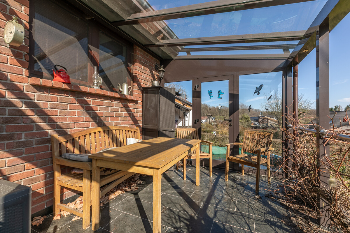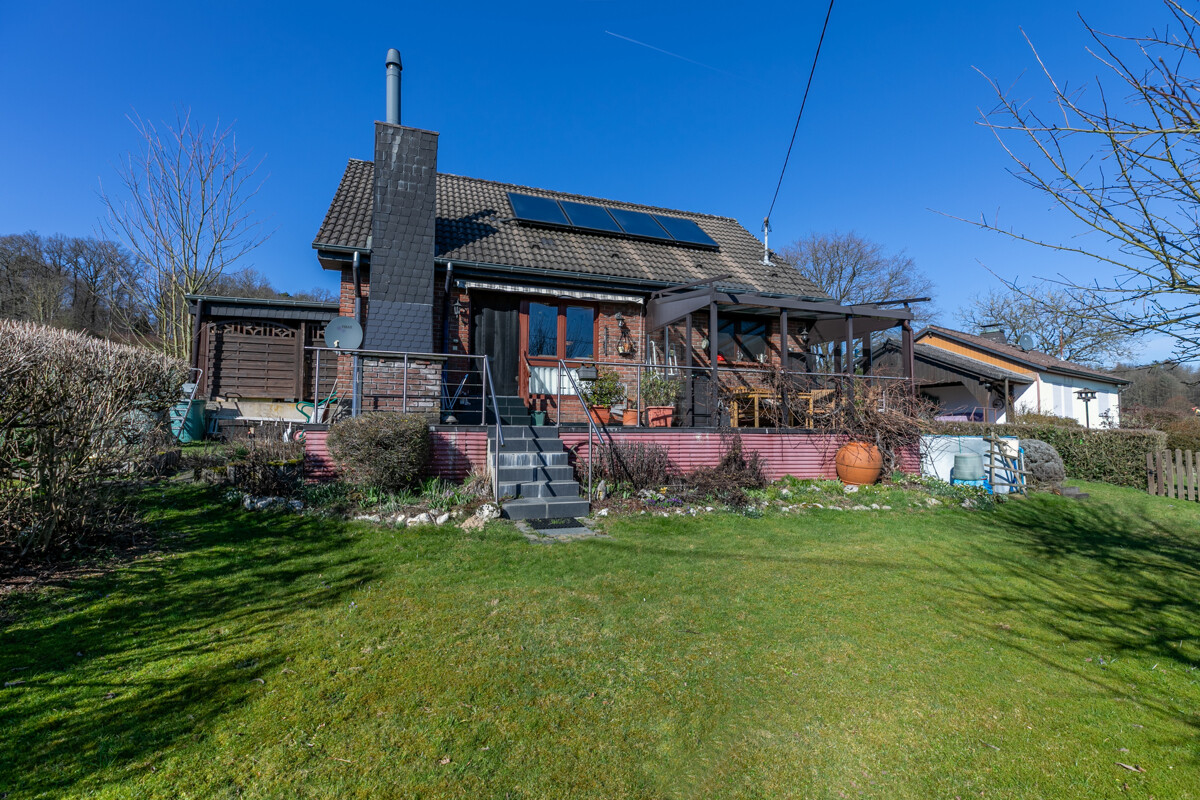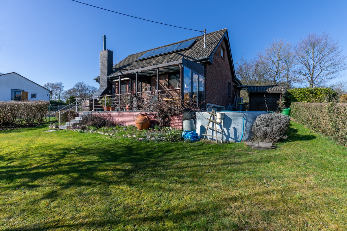 Der Weg in den Garten führt über eine schöne, teilüberdachte Terrasse. Der perfekte Ort für ein gemütliches Beisammensein im Kreise von Freunden und Familie. Umgeben von Natur kann man hier einfach mal den Blick schweifen lassen und den Moment genießen. Im Garten selber gibt es viel Platz, um Träume zu verwirklichen: Hier vielleicht ein kleiner Pool, dort ein Gemüsebeet, kreieren Sie ein Areal für Ihre persönlichen Genussmomente. Ein kleines Gartenhaus mit Stauraum für Geräte und Grillzubehör ist bereits vorhanden. Hier schlummert ein kleines Paradies!