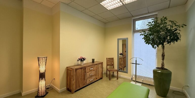 Helles, modernes Ladenlokal, Vinyl-Fußbodenoberbelag, fußbodentiefe Fenster, Wartebereich mit Empfang, 2 Behandlungsräume, Küche, WC-Anlage, abgehängte Kassettendecke mit integrierter Beleuchtung, Rauchwarnmelder, Kunststofffenster mit Isolierverglasung, ebenerdiger Zugang, Tiefgenstellplatz.