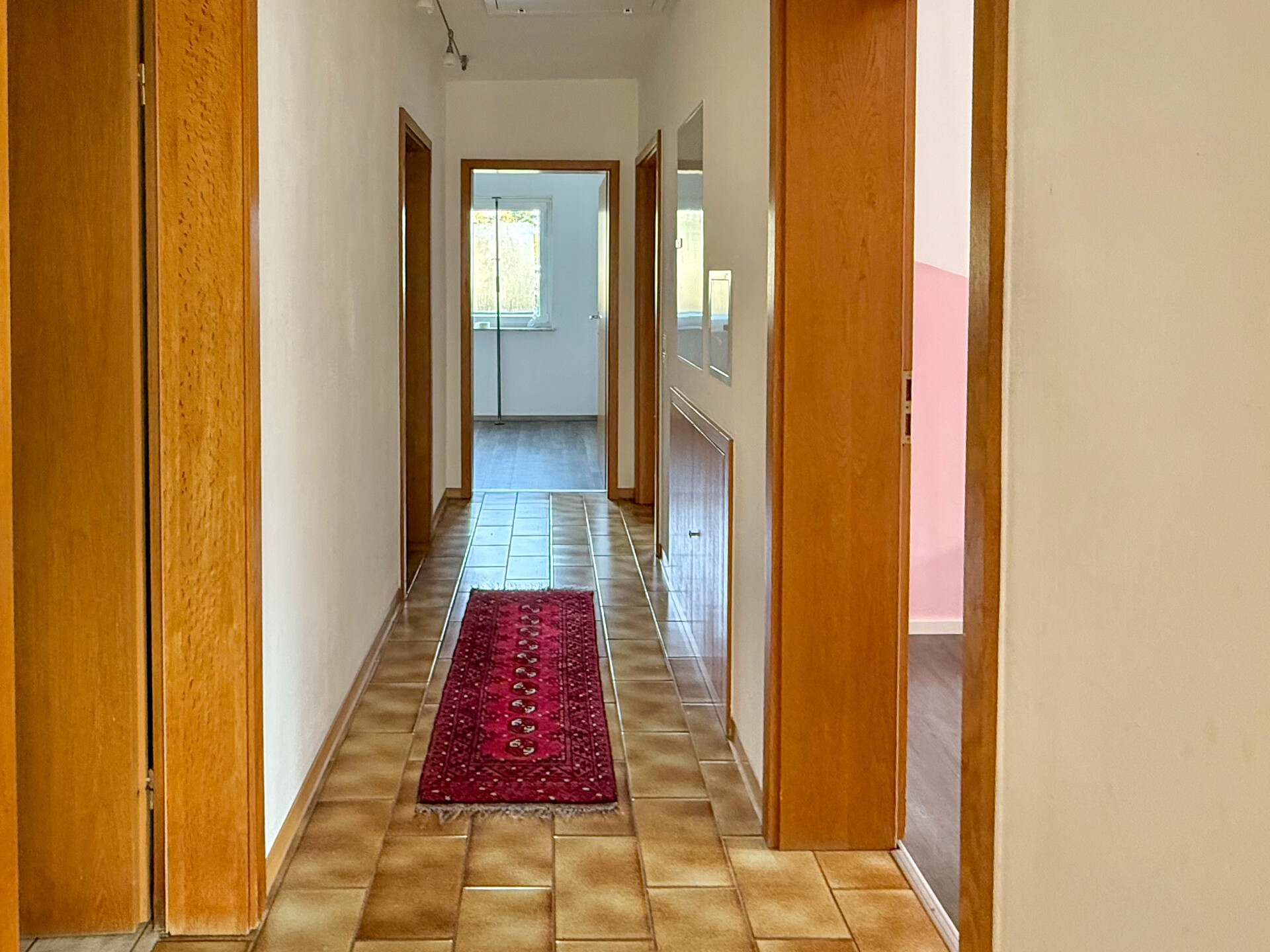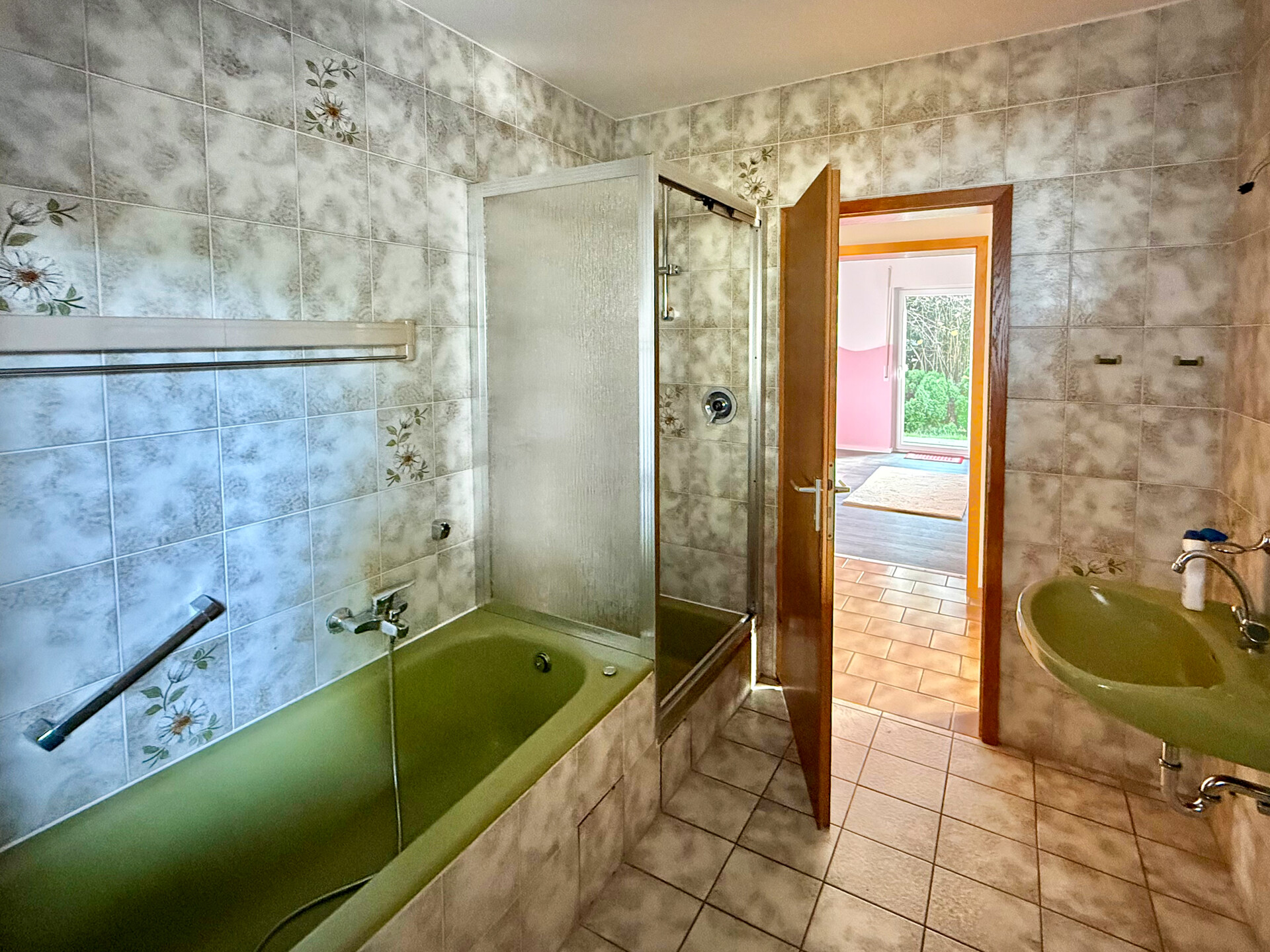 Dieser Bungalow aus ca. 1980 befindet sich in einer beliebten, ruhigen Wohnlage von Bad Marienberg. Mit rund 118 m² Wohnfläche eignet er sich ideal für Paare, Senioren oder kleine Familien. Der helle Wohn- /Essbereich mit großer Fensterfront öffnet sich zur überdachten Süd-West-Terrasse und in den pflegeleichten Garten – perfekt für alle, die wenig Aufwand wünschen und dennoch Wert auf eine grüne Außenfläche legen. Neben einem geräumigen Schlafzimmer stehen zwei weitere Zimmer zur Verfügung, nutzbar als Kinder-, Gästezimmer oder Büro. Zwei Tageslichtbäder sorgen für Komfort. Direkt an die Küche schließt sich ein HWR mit Gastherme an, der sich gut für Vorräte oder Haushaltsgeräte eignet. Die Garage ist über einen Nebenflur mit dem Haus verbunden – ideal, um Einkäufe bequem ins Innere zu bringen. Dieser Flur bietet zudem Platz für Schuhe oder Alltagsgegenstände und verfügt über einen Waschmaschinenanschluss. Zusätzlich zur Hauptterrasse steht eine weitere, südöstlich ausgerichtete Terrasse bereit, ergänzt durch einen kleinen gepflasterten Sitzplatz. Der Dachboden, der sich über die gesamte Hausfläche erstreckt, bietet reichlich Stauraum. Die Lage verbindet Ruhe mit Zentrumsnähe: Einkaufsmöglichkeiten, Cafés uvm. sind in wenigen Gehminuten oder mit dem Ato erreichbar!