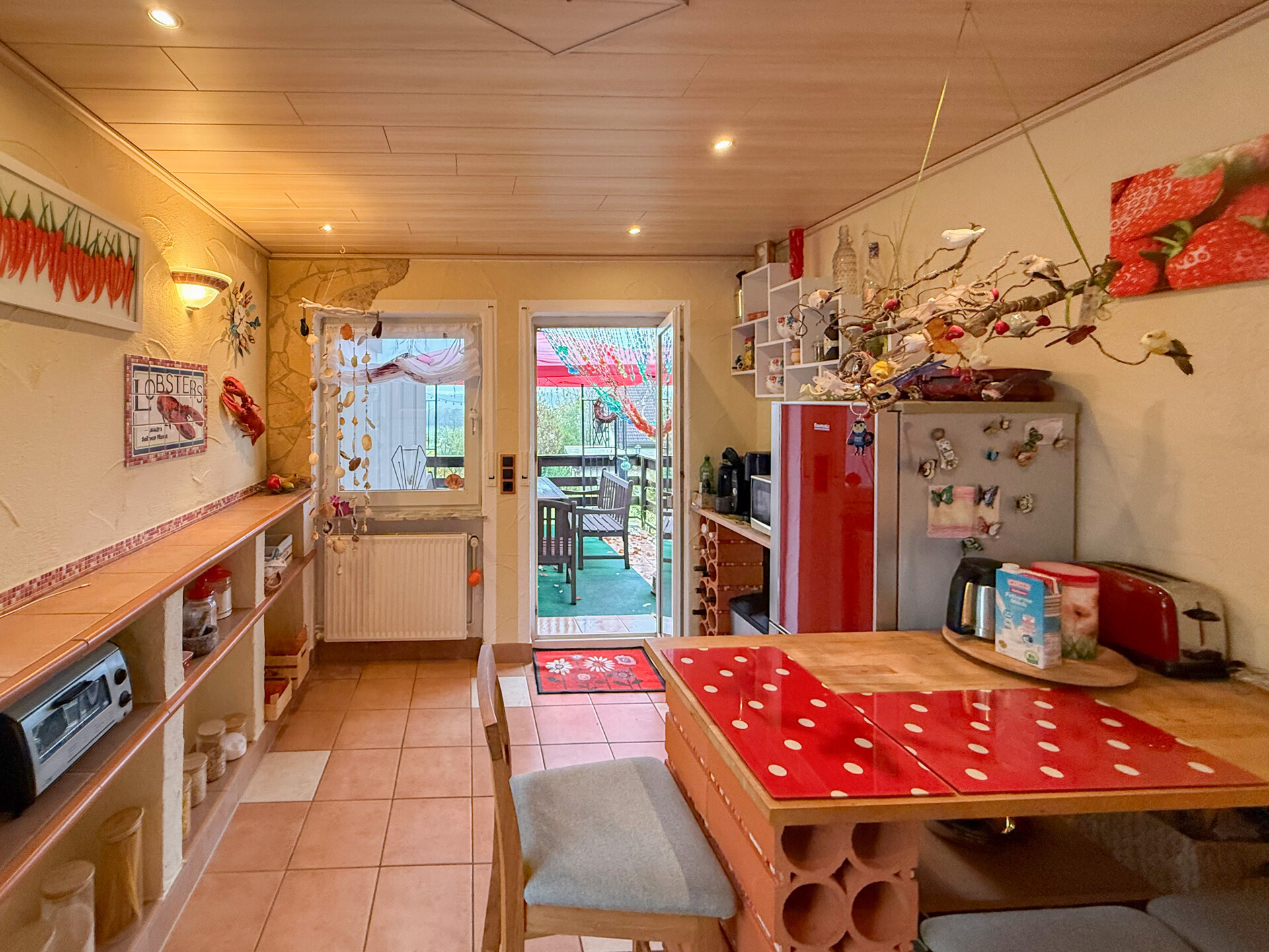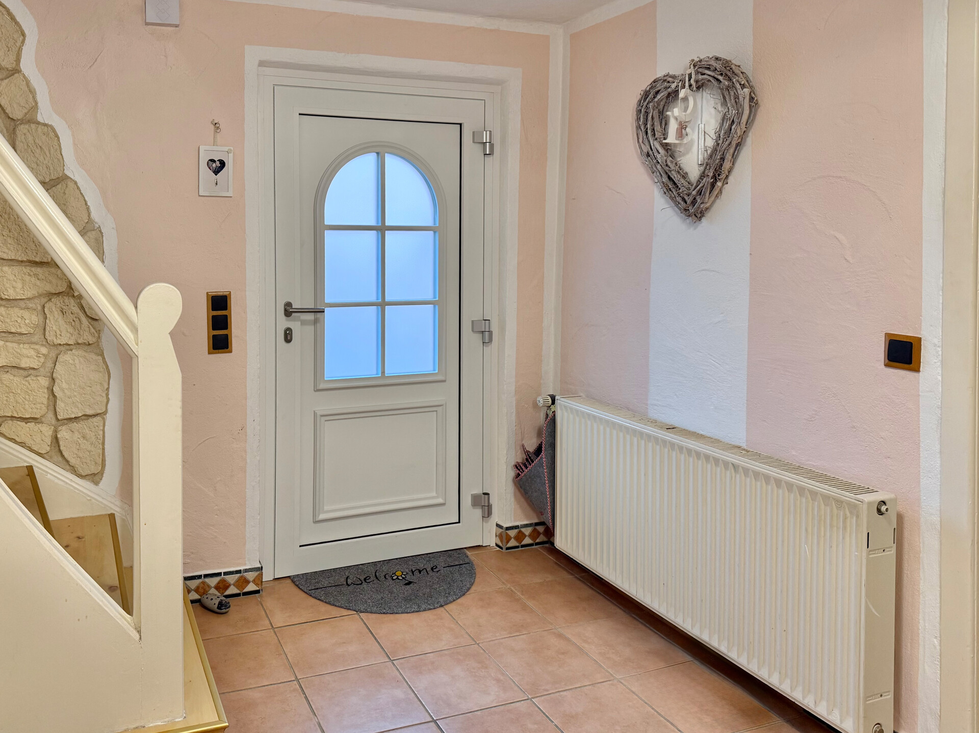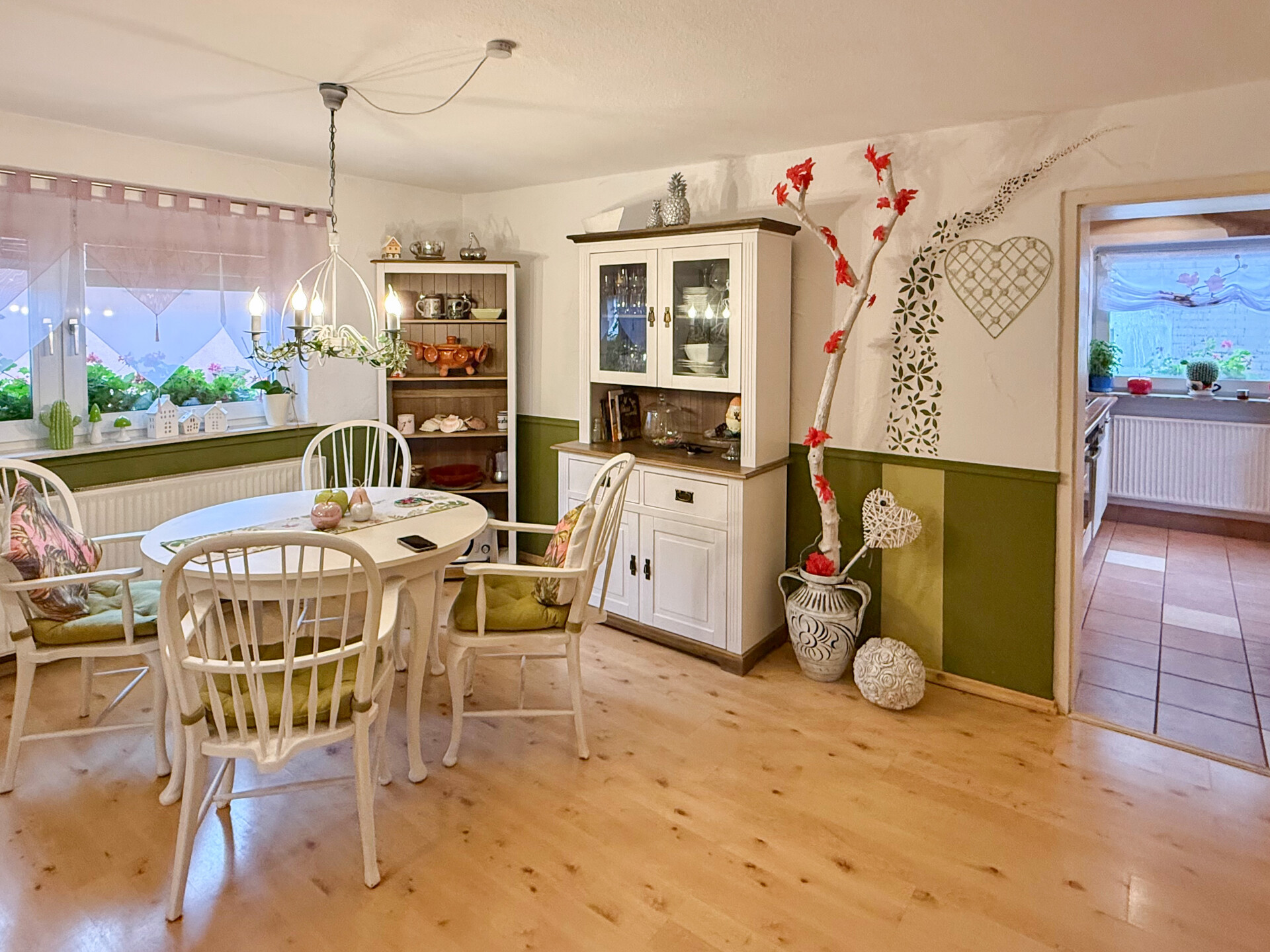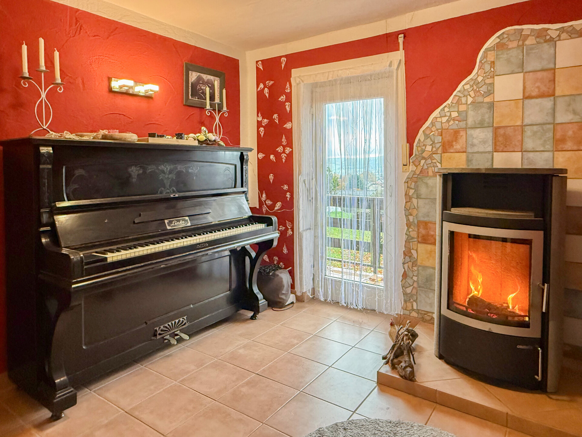 Dieses charmante Einfamilienhaus aus ca. 1914 befindet sich in herrlicher Höhenlage auf einem großzügigen Grundstück von rund 1.219 m², das sich bei Bedarf auch in einen separaten Bauplatz aufteilen ließe. Das Haus präsentiert sich gepflegt und bietet eine Wohnfläche von etwa 132,41 m², die sich über Erd- und Dachgeschoss erstreckt. Im Erdgeschoss empfängt Sie ein großer Wohnbereich mit Kaminofen, von dem aus Sie sowohl den Balkon als auch den Garten erreichen. Das Esszimmer liegt direkt neben der Küche, welche ebenfalls über einen Zugang zum Balkon verfügt. Ein helles Tageslichtbad mit Wanne und Dusche sowie ein weiteres Zimmer, vervollständigen diese Ebene. Die Raumaufteilung ermöglicht komfortables Wohnen auf einer Ebene und eignet sich damit auch hervorragend für das Wohnen im Alter. Im Dachgeschoss stehen zwei Schlafzimmer und ein kleiner Raum, der sich als Büro oder Abstellfläche eignet, zur Verfügung. Der Spitzboden bietet zusätzlichen Stauraum. Eine Einzelgarage mit elektrischem Tor sowie ein Kriechkellerraum sind ebenfalls vorhanden. Das gepflegte Grundstück mit Baumbestand, Gartenhäuschen und beeindruckendem Fernblick macht dieses Zuhause besonders attraktiv. Der Ort selbst besitzt eine eigene Kindertagesstätte und eine Grundschule – ideal für Familien.