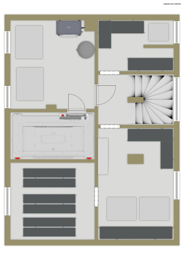 Die Erdgeschossebene wird aktuell vollständig als Wohnfläche genutzt. Bitte beachten Sie, dass gemäß ursprünglicher Planung etwa 60 % dieser Fläche als Gewerbefläche ausgewiesen sind. Eine Nutzungsänderung ist für die dauerhafte Wohnnutzung erforderlich, eröffnet aber gleichzeitig Chancen für kreative Lösungen oder Investitionspotenzial.