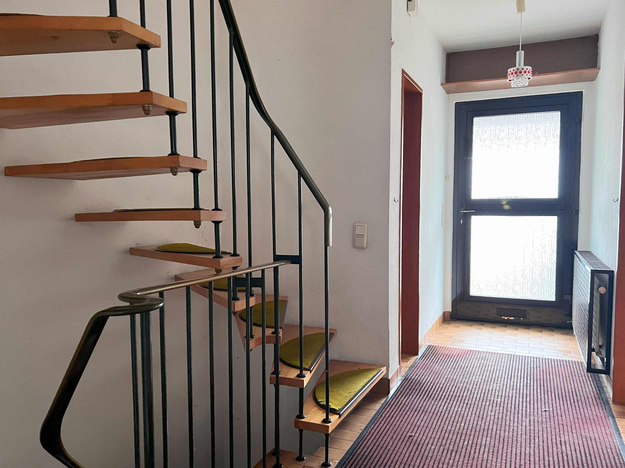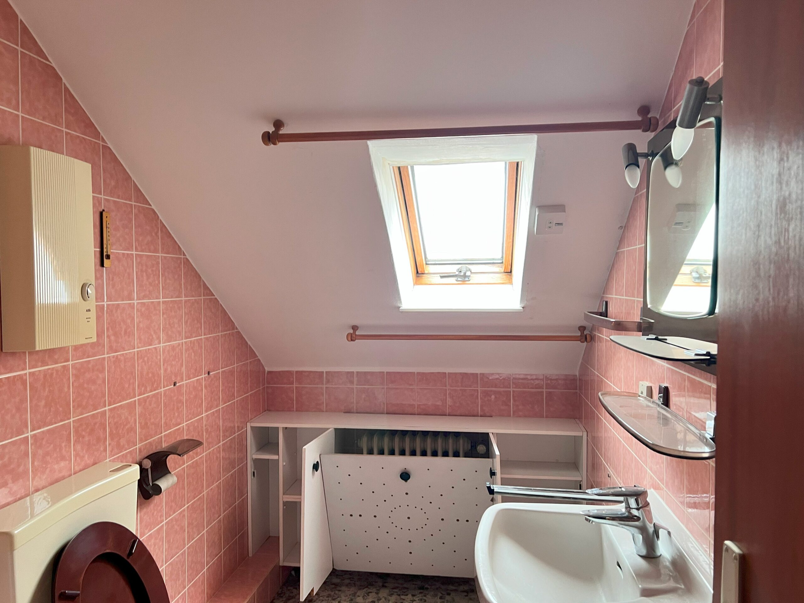 Das voll unterkellerte Einfamilienhaus wurde ca. 1971 in massiver Bauweise als Doppelhaushälfte errichtet. Im Erdgeschoss befinden sich die Küche, der große Wohn-/Essbereich sowie die Diele und das Gäste-WC. Das Obergeschoss hat derzeit 3 Zimmer, ein Bad sowie einen Balkon. Das wohnfähig ausgebaute Dachgeschoss überzeugt durch ein großes Studio / Zimmer sowie ein Bad.