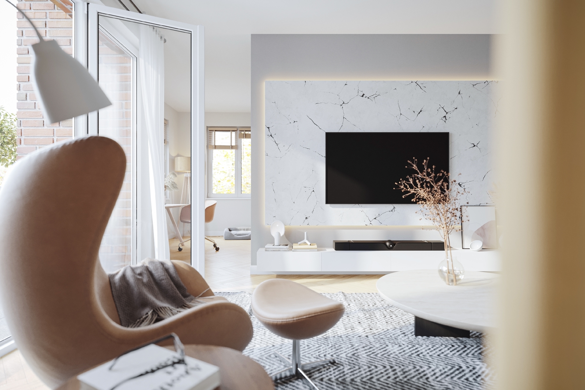 Die Visulalisierungen der Wohnung sind beispielhaft.