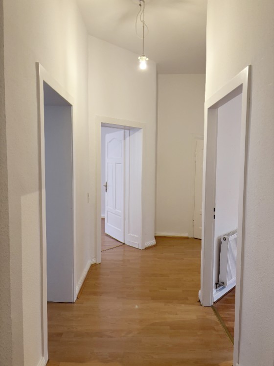 Schade! Sie dürfen nur eine Etage durch das stilvolle Treppenhaus gehen, denn Sie wohnen in der bel étage! Alle Räume gehen vom großzügigen Flur ab: Wohn- und Esszimmer sind altbautypisch mit einem Durchgang verbunden, wobei das Wohnzimmer sogar einen Erker hat. Beide Räume liegen zur Straßenseite. Das Schlafzimmer (mit Duschbad `en suite´) liegt – genau wie die angenehm große Küche mit kleinem Balkon – zur Rückseite des Hauses.