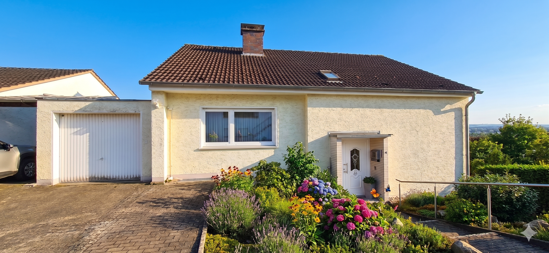 Dieses Haus besticht durch seine vielseitigen Nutzungsmöglichkeiten und die ruhige Lage mit schönem Ausblick. Ein perfekter Ort, um sich rundum wohlzufühlen.