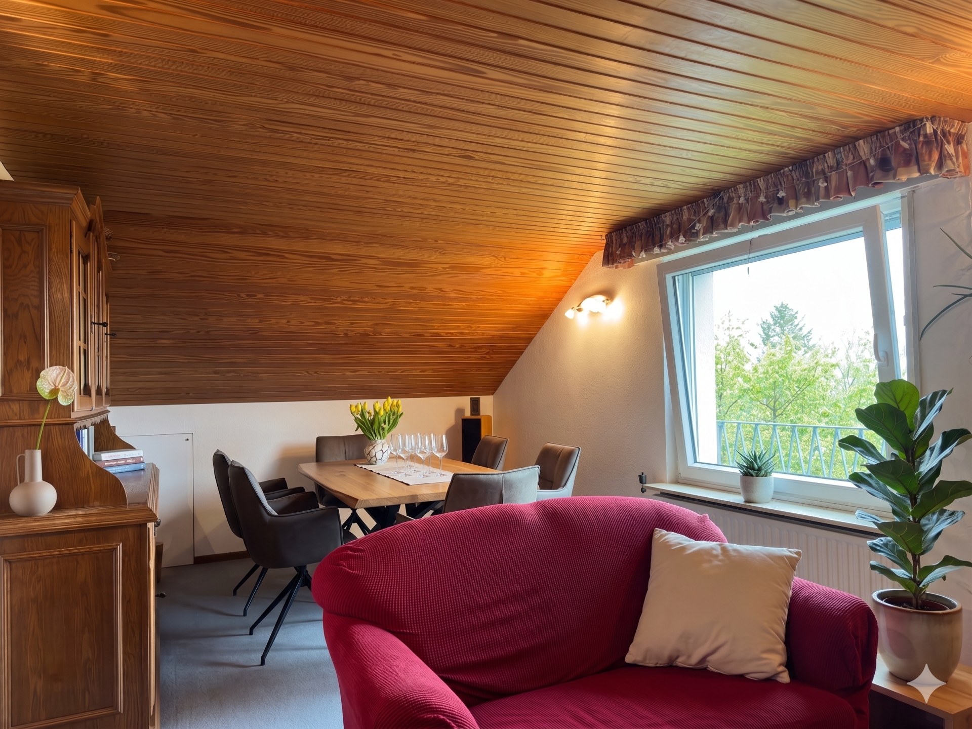 Das Dachgeschoss bietet zusätzlichen Wohnraum mit einem Schlafzimmer, einem Wohn- und Esszimmer, einer Küche und einem Badezimmer. Zwei Abstellräume sorgen für ausreichend Stauraum. Diese Fläche ist nicht in den Wohnfläche enthalten da hier keine Baugenehmigung vorliegt (also zusätzlich ca. 42 m²)