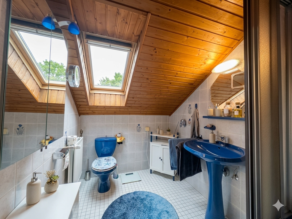 - Badausstattung: Dusche, Badewanne