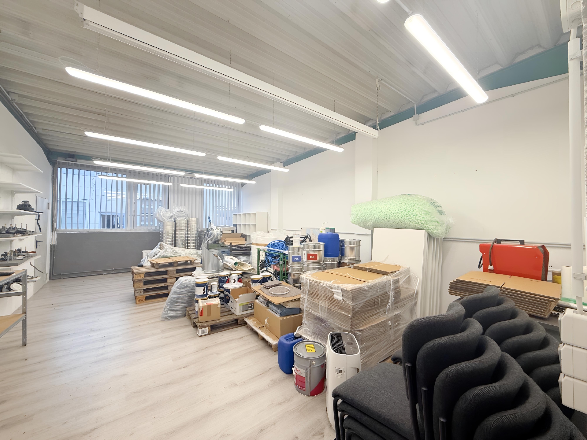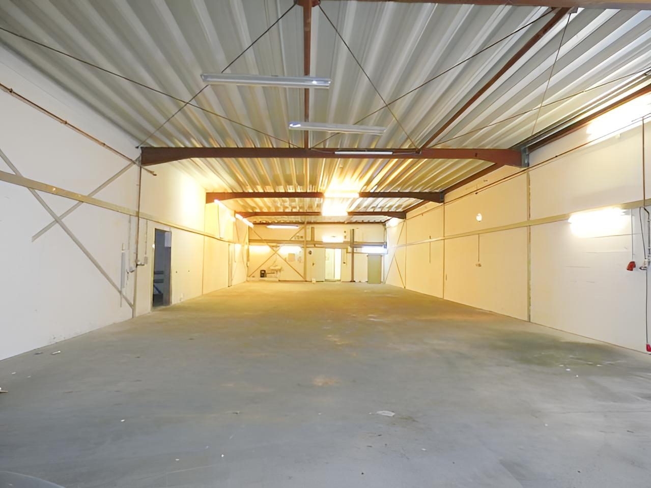 Die angebotene Gewerbeeinheit befindet sich in einem soliden Gewerbebau aus dem Baujahr 1990 und bietet eine Gesamtfläche von rund 175 m², die sich in ca. 88 m² Büroflächen und ca. 87 m² Lagerflächen aufteilt. Der Lagerbereich ist ebenerdig über ein Sektionaltor andienbar und eignet sich durch seine klare Geometrie, die vorhandene Hallenhöhe sowie die robuste Bodenbeschaffenheit ideal für Lager-, Montage- oder Produktionszwecke. Großzügige Fensterflächen sorgen für eine natürliche Belichtung, während die Stahlkonstruktion und der Industrieboden eine funktionale und langlebige Nutzbarkeit ermöglichen. Direkt angrenzend befindet sich der Verwaltungsbereich mit mehreren Büroräumen, Sanitäranlagen, Teeküche sowie Flur- und Abstellbereichen. Die Büros wirken hell und freundlich, verfügen über große Fensterflächen und bieten eine angenehme Arbeitsatmosphäre für Administration, Disposition oder Kundenkontakt. Durch die Kombination aus Lager und Büro eignet sich die Einheit besonders für kleine bis mittelständische Unternehmen aus den Bereichen Handel, Handwerk, Produktion, Logistik oder E-Commerce, die eine kompakte, gut nutzbare und wirtschaftlich sinnvolle Gewerbelösung suchen.