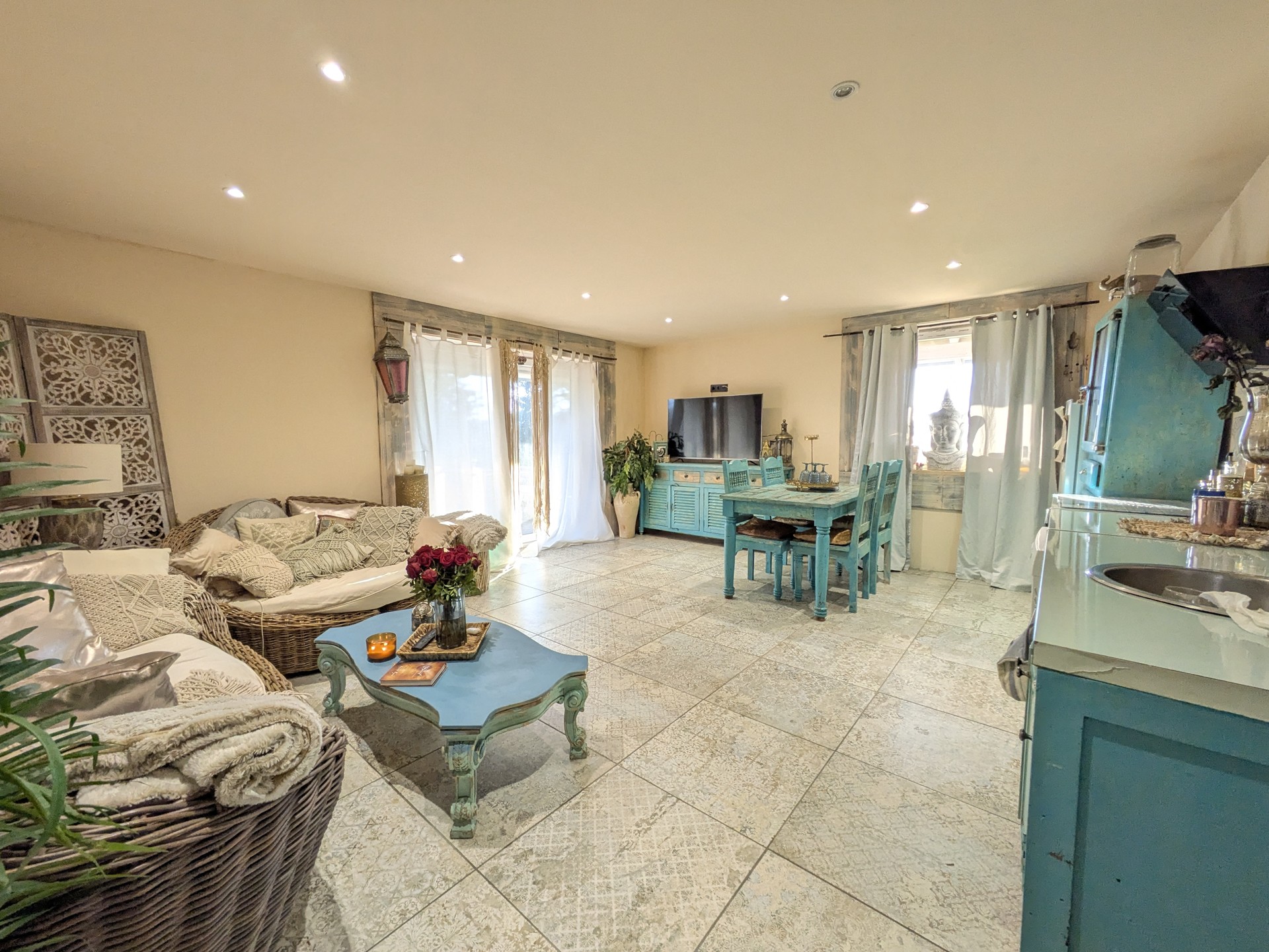 Das Haupthaus verfügt über eine offene Architektur mit hohen Decken, Sichtbalken und einer stilvollen Kombination aus Naturmaterialien und modernen Elementen. Der Wohnbereich ist geprägt von einem gemütlichen Kaminofen, großzügigen Fensterfronten und direkten Zugängen zu der weitläufigen Terrasse, die mit Glasgeländern für eine ungestörte Aussicht sorgen.