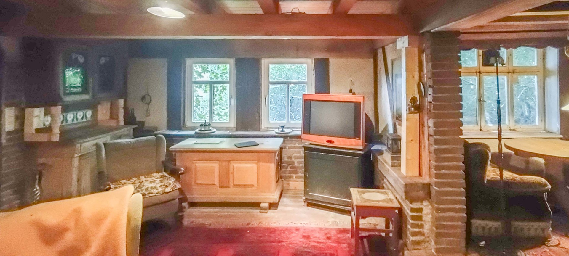 Die solide Bauweise und das sichtbare Fachwerk im Inneren verleihen dem Haus eine besondere Ausstrahlung. Die Raumaufteilung bietet viel kreativen Spielraum – hier können Sie Ihre Ideen und Vorstellungen voll entfalten. Die Raumhöhen von ca. 1,90 m bis ca. 2,20 m unterstreichen den urigen Charakter des Hauses und schaffen eine gemütliche Wohnatmosphäre.