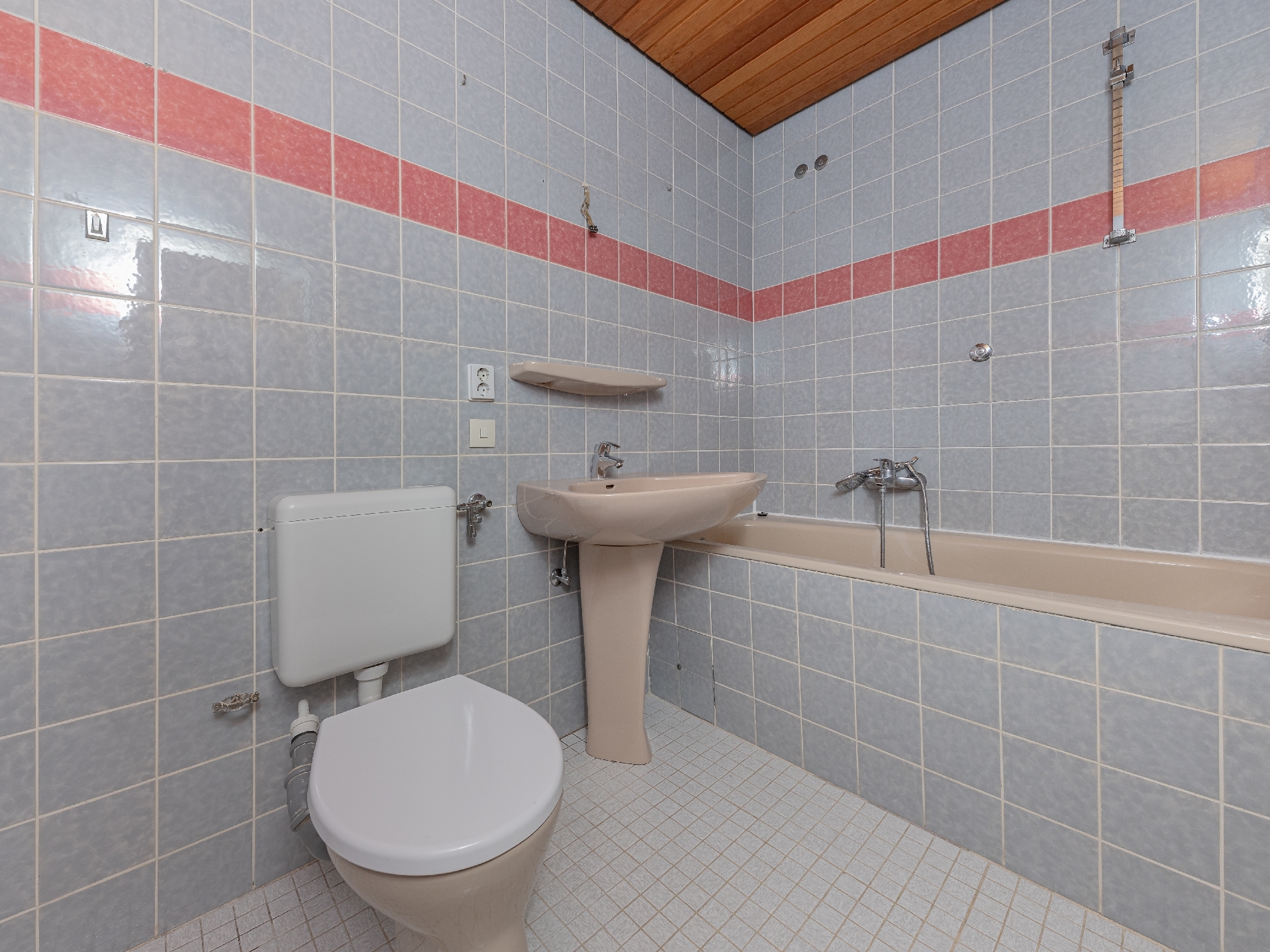 Das Familienbad mit Badewanne entspricht dem baujahrtypischen Charme, während das separate Duschbad bereits modernisiert wurde und Komfort im Alltag garantiert. Ein praktischer Abstellraum rundet den funktionalen Bereich ab.