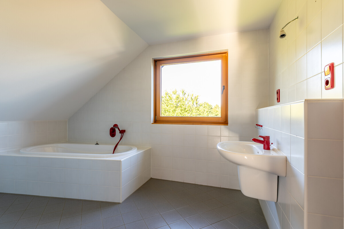 Über eine schöne Holztreppe gelangt man in das DG des Hauses. Hier warten gleich vier Schlafzimmer auf Sie! Für die vorderen drei, die als Kinderzimmer gedacht sind, wurde ein eigenes Vollbad geplant. Außerdem profitieren zwei der Zimmer von einem großzügigen Balkon, der sich über die komplette Giebelseite erstreckt. Das Elternschlafzimmer liegt im hinteren Bereich des DG und verfügt über ein Ensuite-Bad. Ein wunderbares Refugium!