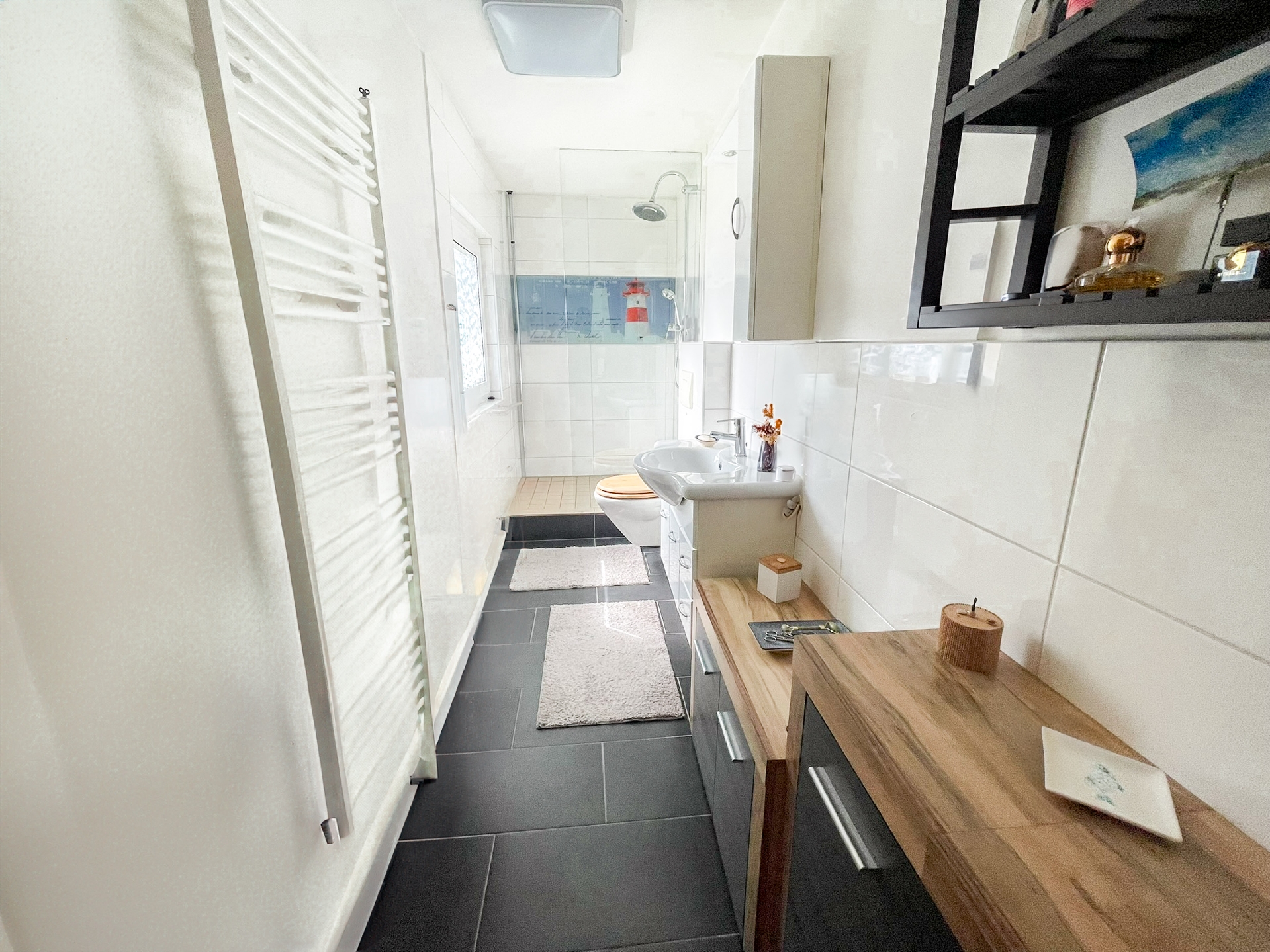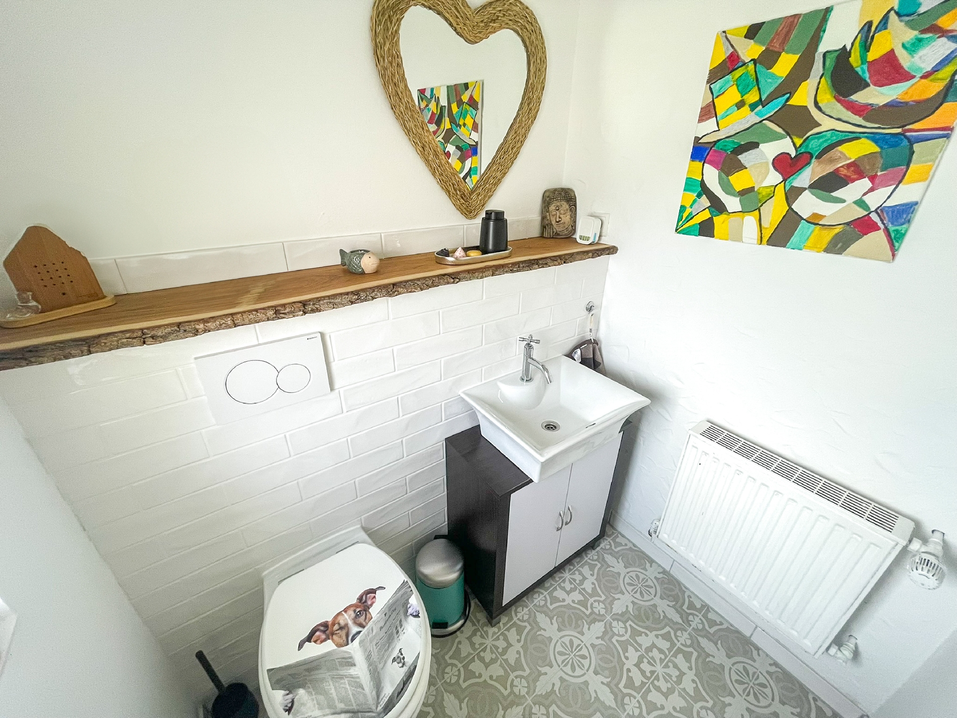 Beim Betreten des Hauses empfängt Sie die Diele mit ausreichend Platz für eine Garderobe. Zu Ihrer Linken gelangen Sie zum Gäste-WC, das 2024 erneuert wurde.