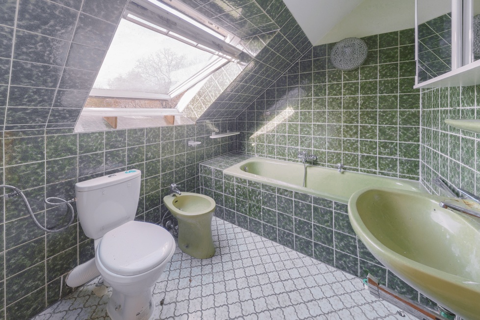 - Badausstattung: Dusche, Badewanne, Fenster im Badezimmer