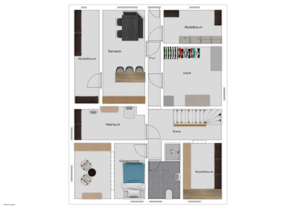 – zwei Hobbyräume, ideal z. B. Fitnessraum, Spiel- oder Kreativzimmer, Gäste-Zimmer, Partyraum