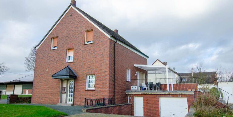 Willkommen in Ihrem neuen Zuhause! Dieses charmant verklinkerte Anwesen vereint zwei großzügige Geschosse unter einem Dach. Auf einem weitläufigen Grundstück von 2856 m² erstreckt sich Ihr persönliches Paradies mit einem großen Garten, der zum Verweilen, Spielen und Entspannen einlädt. Betreten Sie das Haus, so empfängt Sie ein heller Treppenaufgang der zu dem offenen Wohn-Essbereich führt. Dieser ist mit viel Licht durchflutet und schafft eine einladende Atmosphäre. Hier können Sie gemütliche Abende am Kamin verbringen oder mit Freunden nett verweilen. Die große Küche bietet genügend Raum für Kochaktivitäten. Das Badezimmer rundet diese Etage ab. Es wurde damals nachträglich eingebaut. Mit insgesamt fünf Zimmern über 2 Etagen, haben Sie genügend Raum für individuelle Gestaltungsmöglichkeiten ob als Schlafzimmer, Arbeitszimmer, Kinderzimmer oder Gästezimmer, hier findet jeder seinen Platz. Ein weiteres Badezimmer sorgt dafür, dass auch große Familien oder Gäste nie aufeinander warten müssen. Vom Wohnzimmer haben Sie Zutritt auf die große Terrasse. Diese ist der perfekte Ort, um die warmen Sonnenstrahlen zu genießen oder entspannte Grillabende zu veranstalten. Zusätzlich bietet das Haus eine praktische Doppelgarage, die nicht nur Platz für Ihre Fahrzeuge, sondern auch für Fahrräder bietet. Für Gartengeräte steht ein weiterer Schuppen zur Verfügung. Der Keller bietet Ihnen zusätzlichen Stauraum und die Möglichkeit, Ihre Hobbys zu verwirklichen. Dieses leerstehende Anwesen wartet darauf, von Ihnen mit Leben gefüllt zu werden. Nutzen Sie die Chance, ein Stück Geschichte zu bewahren und gleichzeitig Ihr persönliches Traumhaus zu gestalten. Lassen Sie Ihrer Kreativität freien Lauf und verwandeln Sie dieses Juwel in Ihr ganz persönliches Zuhause!