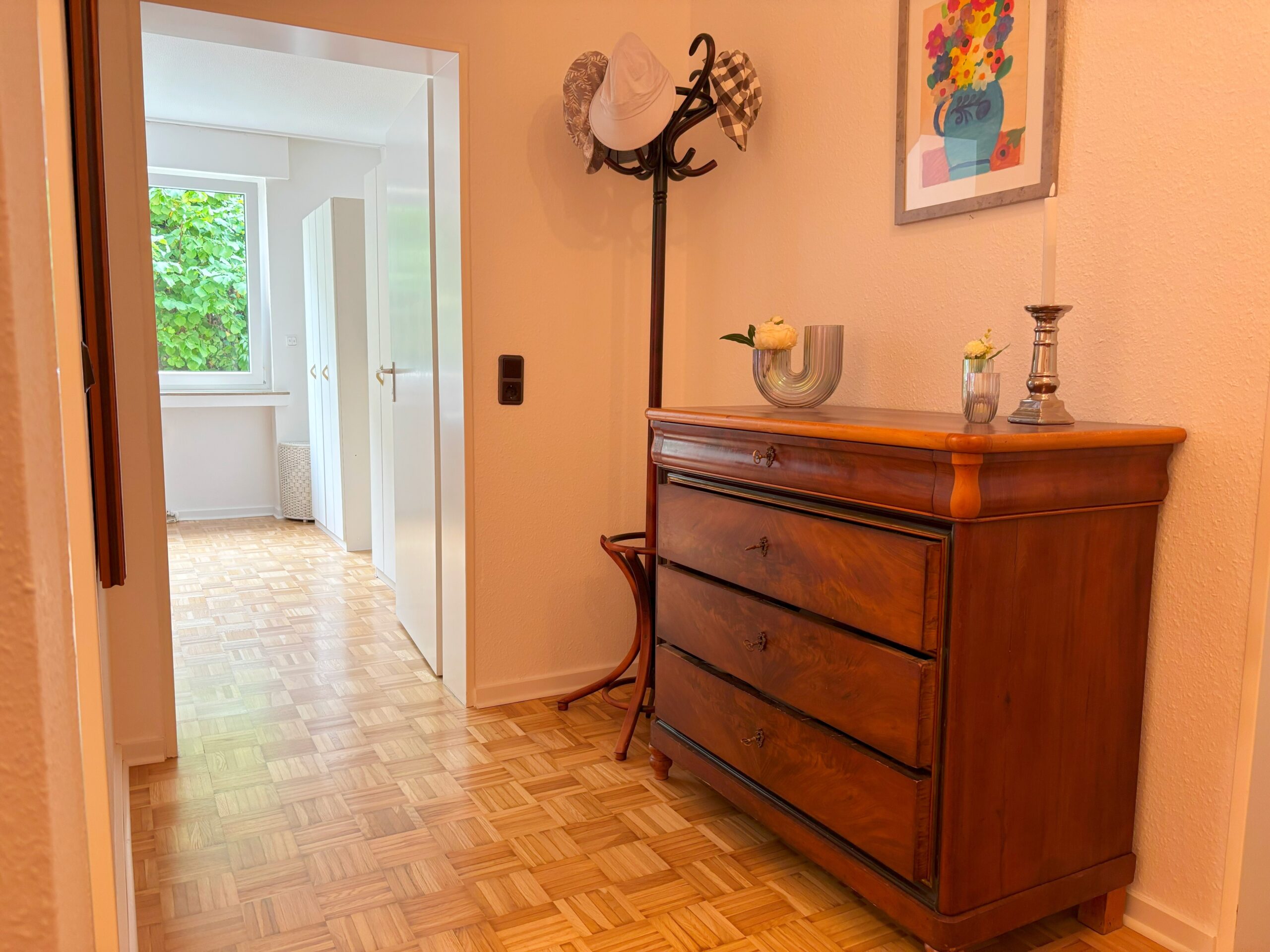 Diese gemütliche und helle 2-Zimmer-Wohnung befindet sich im Hochparterre eines gepflegten Mehrfamilienhauses in Neu-Frankenforst. Die Wohnung wurde im Jahr 2020 komplett renoviert. Beide Zimmer sowie die Diele sind mit Parkett ausgelegt, Bad und Küche sind gefliest. Das Bad verfügt über eine barrierearme Dusche, einen Waschtisch und ein WC. Die Küche ist sehr geräumig und hat ein großes Fenster. Vom Balkon hat man einen ruhigen Blick ins Grüne. Ein Kellerraum, eine Waschküche sowie ein Garagenstellplatz gehören ebenfalls zur Wohnung.