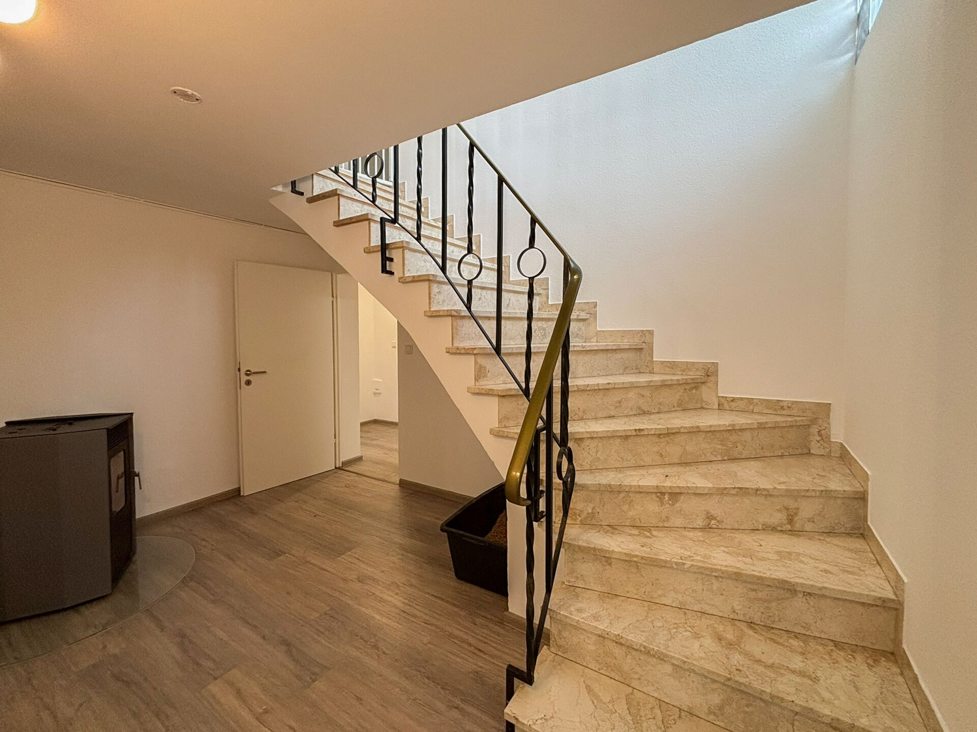 Im Untergeschoss befindet sich eine gemütliche Wohnung, bestehend aus zwei Zimmern, Küche und Badezimmer. Sie ist über einen separaten Eingang zugänglich und bietet sich sowohl für die Vermietung an als auch für größere Kinder oder die Großeltern – sie ist lediglich durch eine Zimmertür vom oberen Wohnbereich abgetrennt und schafft dadurch zusätzlichen Platz. Während das Badezimmer im Untergeschoss dem Baujahr der Immobilie entspricht, zeigt sich das übrige Haus in einem durchweg modernen und gepflegten Erscheinungsbild. Zusätzlich besteht im Eingangsbereich der ELW die Möglichkeit, eine geschützte Terrasse herzurichten und so einen weiteren angenehmen Außenbereich zu schaffen.