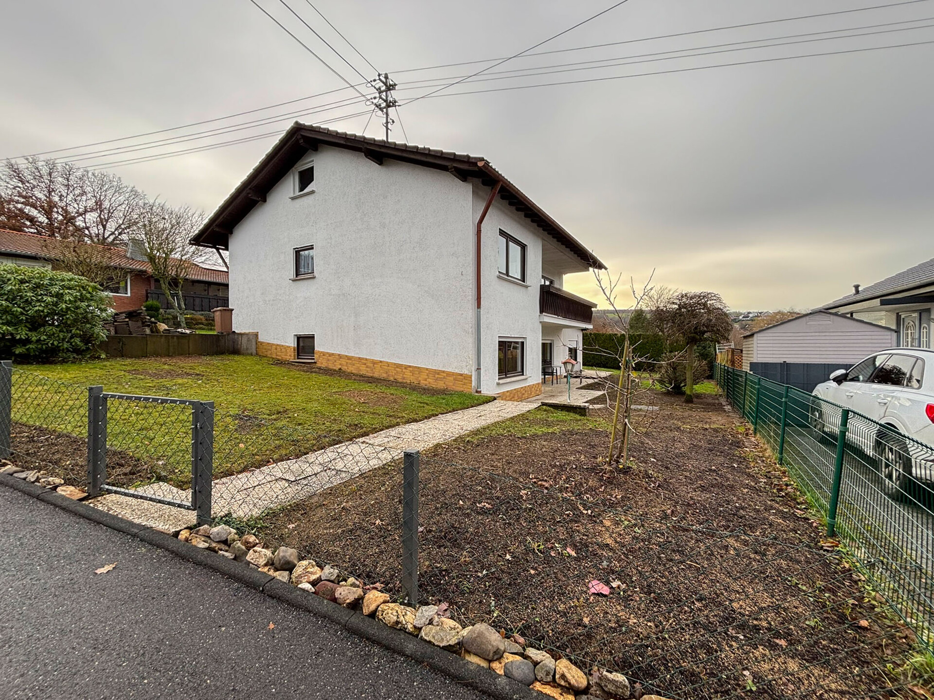 Der Garten wurde professionell bewirtschaftet und kann im Frühjahr nach eigenen Vorstellungen neu gestaltet oder weitergeführt werden. Für Ihre Fahrzeuge stehen eine Garage mit elektrischem Rolltor sowie ein zusätzlicher Stellplatz bereit.