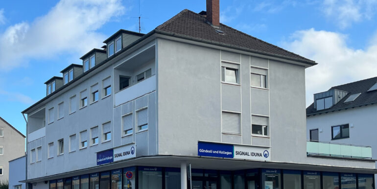 Im Erdgeschoss befindet sich ein großzügiges Ladenlokal mit ca. 270 m² Nutzfläche, das aktuell vermietet ist. In den beiden Obergeschossen verteilen sich insgesamt fünf Wohneinheiten: