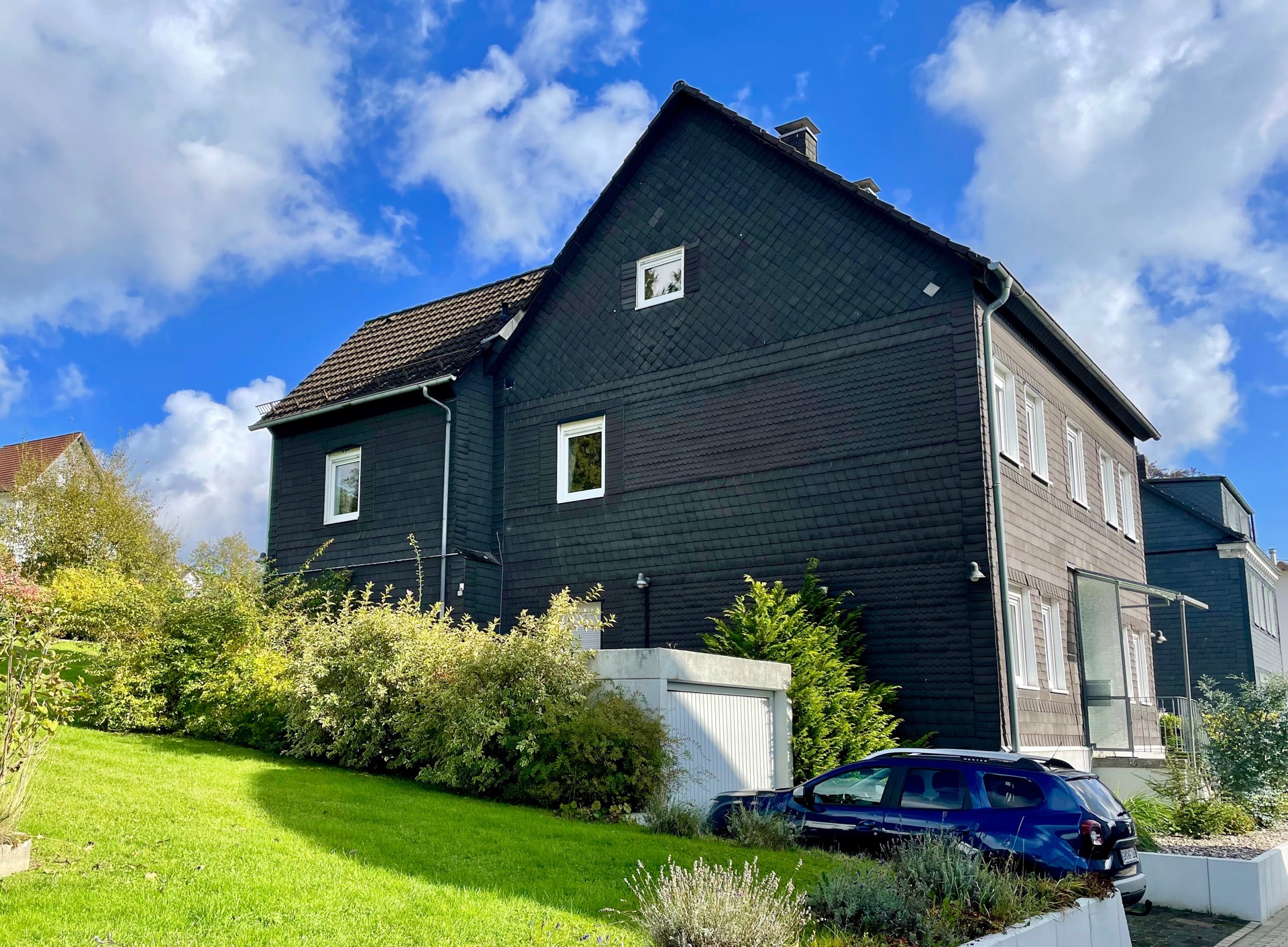 Das Haus ist teilunterkellert. Neben dem Haus befinden sich zwei Garagen. Ein großer Garten mit zwei Terrassen rundet dieses Angebot ab.