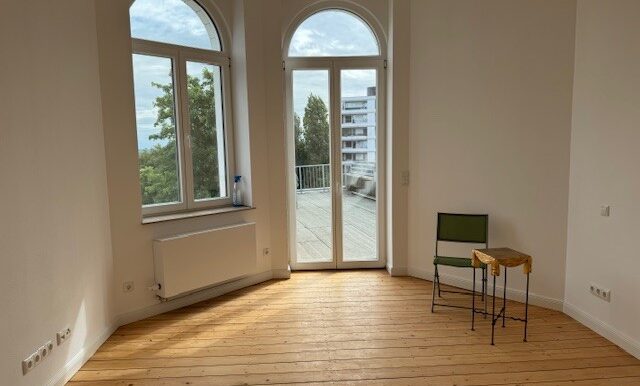 Diese außergewöhnlich großzügige und lichtdurchflutete 2-Zimmer-Dachgeschosswohnung mit ca. 120 m² Wohnfläche bietet exklusives Wohnen auf hohem Niveau. Die Wohnung befindet sich im obersten Geschoss eines gepflegten Mehrfamilienhauses und vereint offene Raumgestaltung mit modernem Wohnkomfort. Der weitläufige Wohn- und Essbereich beeindruckt durch seine offene Architektur, große Fensterflächen und die angenehme Raumhöhe mit Sichtbalken, die dem Raum eine besondere Atmosphäre verleihen. Die Wohnung verfügt über ein geräumiges Schlafzimmer mit viel Platz für Schrank- und Stauraummöglichkeiten. Die moderne Küche ist offen zum Wohnbereich gestaltet und kann nach individuellen Vorstellungen eingerichtet werden. Das stilvoll geflieste Badezimmer ist mit einer Badewanne sowie einer separaten Dusche ausgestattet und bietet ebenfalls Tageslicht.