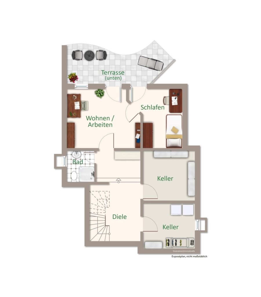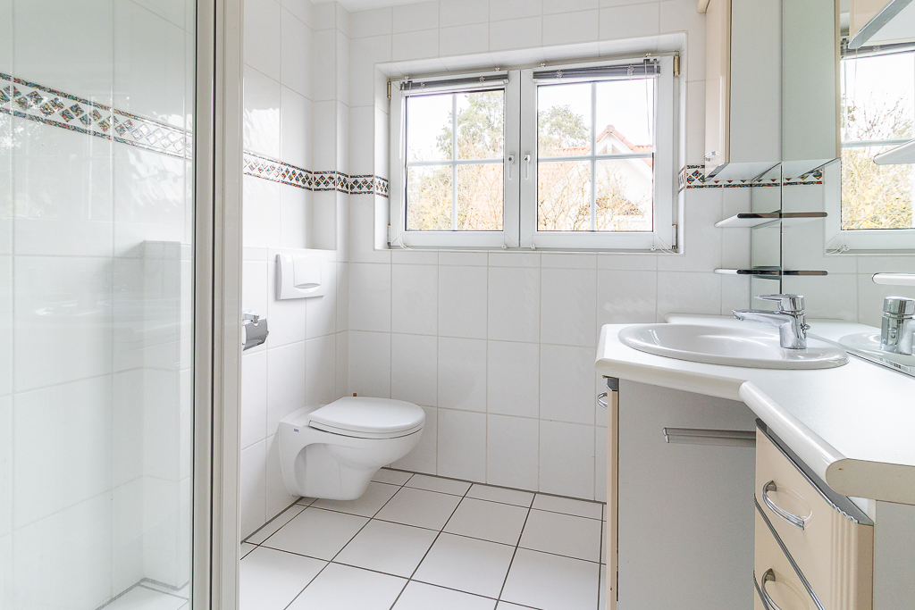 Auch das Untergeschoss hat einiges zu bieten. Zwei weitere Wohnräume eröffnen vielfältige Nutzungsmöglichkeiten. Vorhandene Küchenanschlüsse bieten die Möglichkeit, die Räume wie eine Einliegerwohnung oder auch für berufliche Zwecke zu nutzen. Ein weiteres Duschbad ergänzt das durchdachte Raumangebot. Dank der Hanglage des Hauses besteht direkter Zugang zur zweiten Terrasse und dem Garten. Ein idealer Ort zur Entspannung an sonnigen Tagen. Einbauschränke bieten reichlich Stauraum, während zwei zusätzliche Kellerräume das vielfältige Angebot abrunden. Durch seine besondere Lage bietet das Grundstück und der gut durchdachte Garten Ihnen viel Privatsphäre und mit insgesamt zwei Terrassen genug Platz für die gesamte Familie.