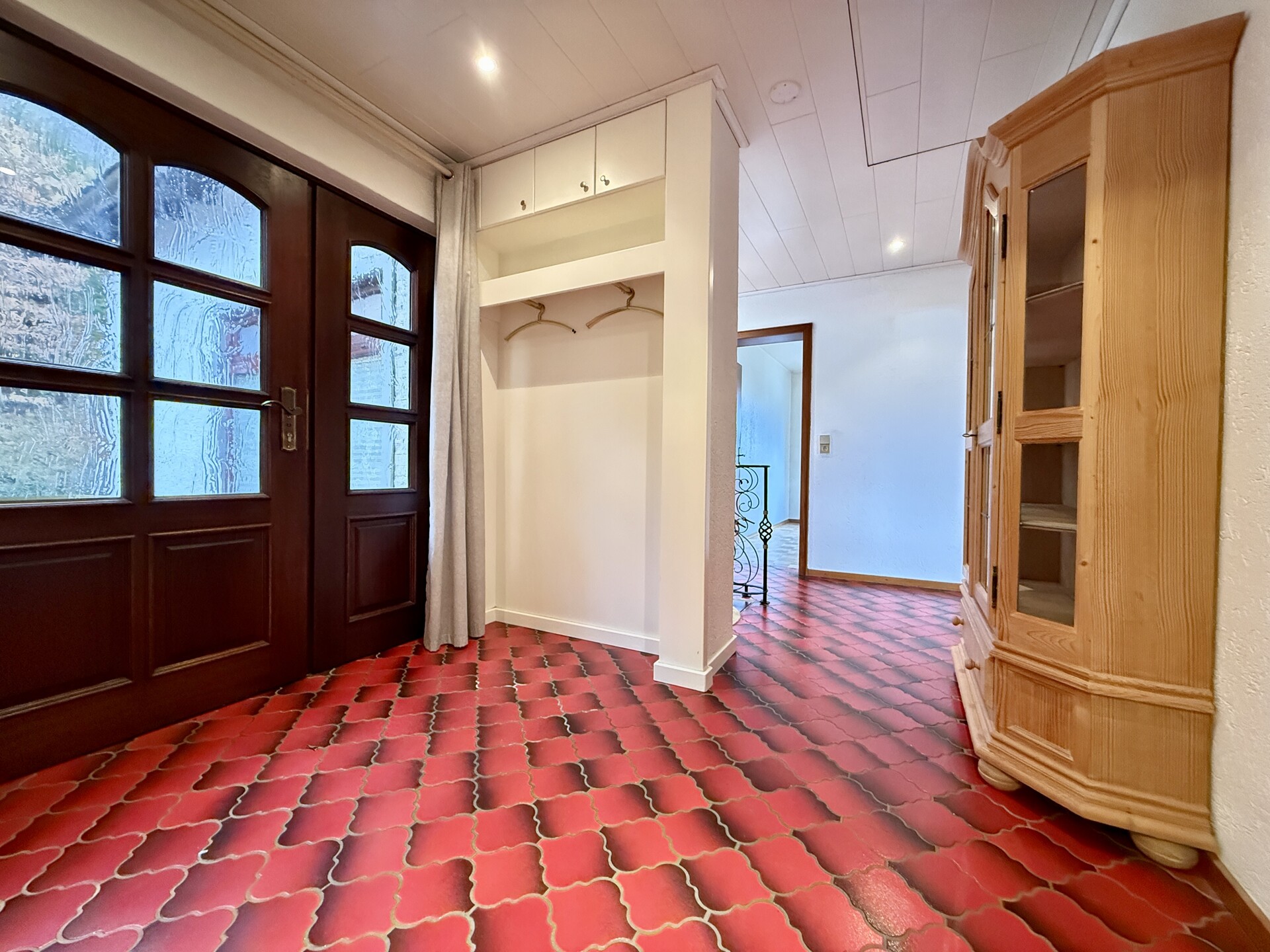 Ein Aufzug verbindet alle Ebenen vom Untergeschoss bis ins Dachgeschoss und sorgt für zusätzlichen Komfort im Alltag. Die Beheizung erfolgt über eine moderne Hybridanlage aus Luftwärmepumpe und Flüssiggasterme. Ergänzend ist auf dem Dach eine Photovoltaikanlage installiert, die die Energieeffizienz des Hauses unterstützt.