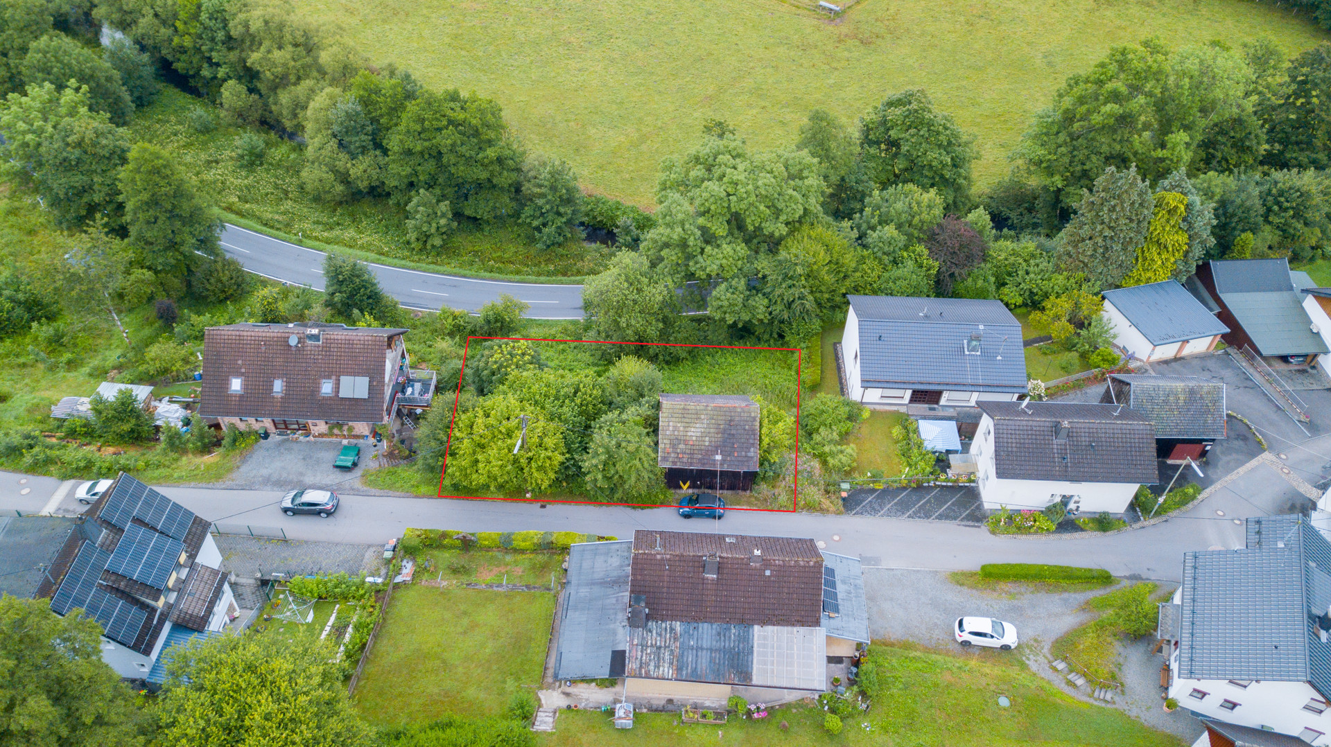 Das rund 975 m² große Grundstück in Morsbach befindet sich in ruhiger, naturnaher Umgebung und beginnt mit einer ebenen Fläche, die anschließend in eine ausgeprägte Hanglage übergeht – ideal für eine Bebauung mit Aussicht in die umliegende Landschaft. Das Grundstück ist derzeit stark bewachsen und mit einer älteren Scheune bebaut, die starkt renovierungsbedürftig ist oder auch zurückgebaut werden kann.