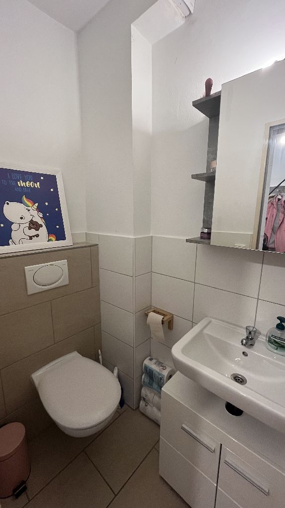 Renoviert, Fliesen und Laminat, Hänge-WC im Badezimmer und Gäste-WC, elektrischer Durchlauferhitzer, Gegensprechanlage, Rauchwarnmelder, Gaszentralheizung.