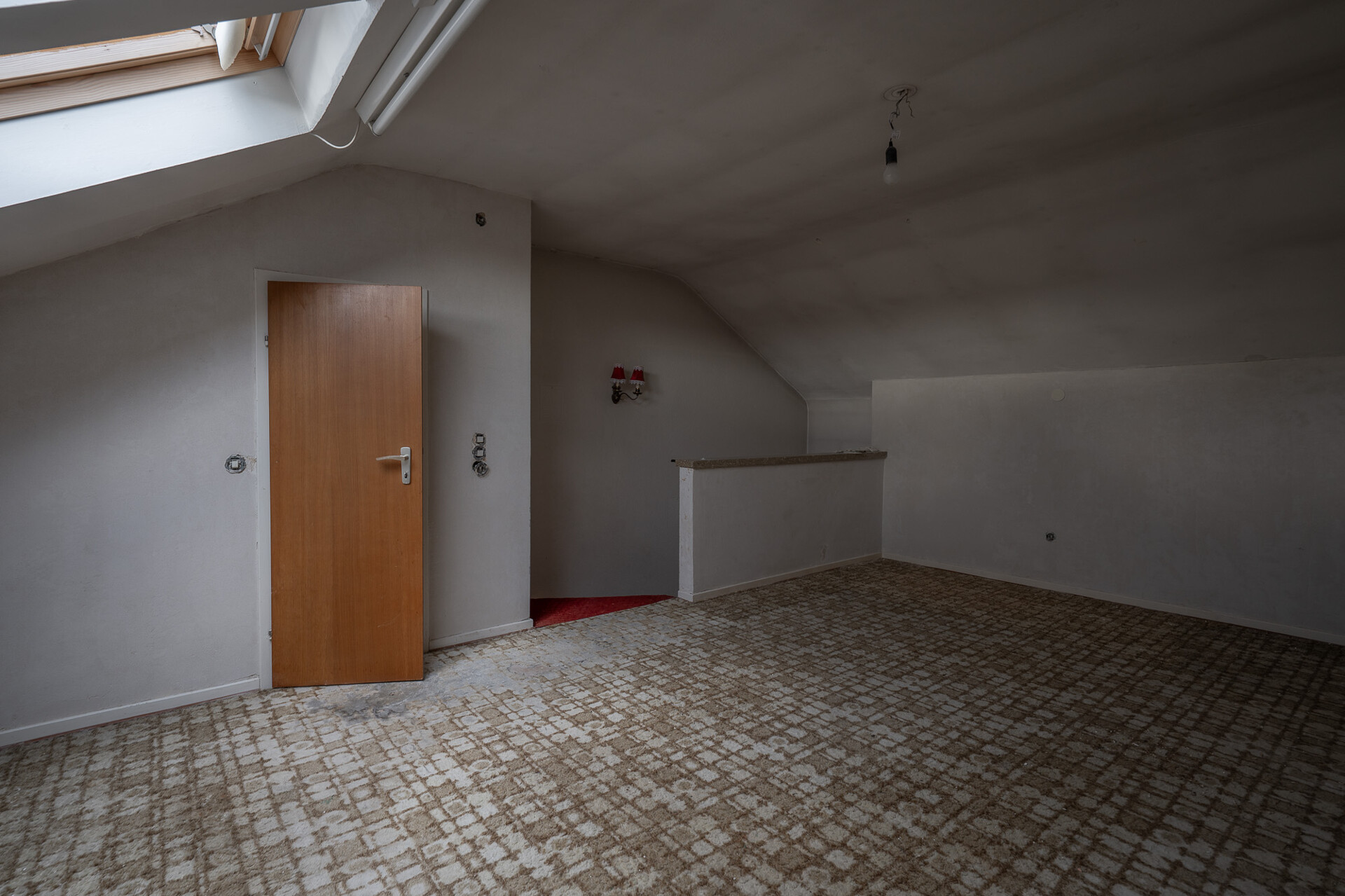 Das Dachgeschoss beeindruckt mit einer großzügigen, hellen Fläche, die vielseitig nutzbar ist: als Kinderzimmer, Arbeitsbereich oder Atelier. Neue Velux-Fenster sorgen für viel Tageslicht und eine angenehme, freundliche Atmosphäre.