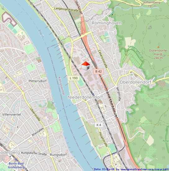 Unmittelbar an der Ortsgrenze zu Bonn-Oberkassel, direkte Autobahnanbindung zur B42. Öffentliche Verkehrsmittel sind fußläufig erreichbar.