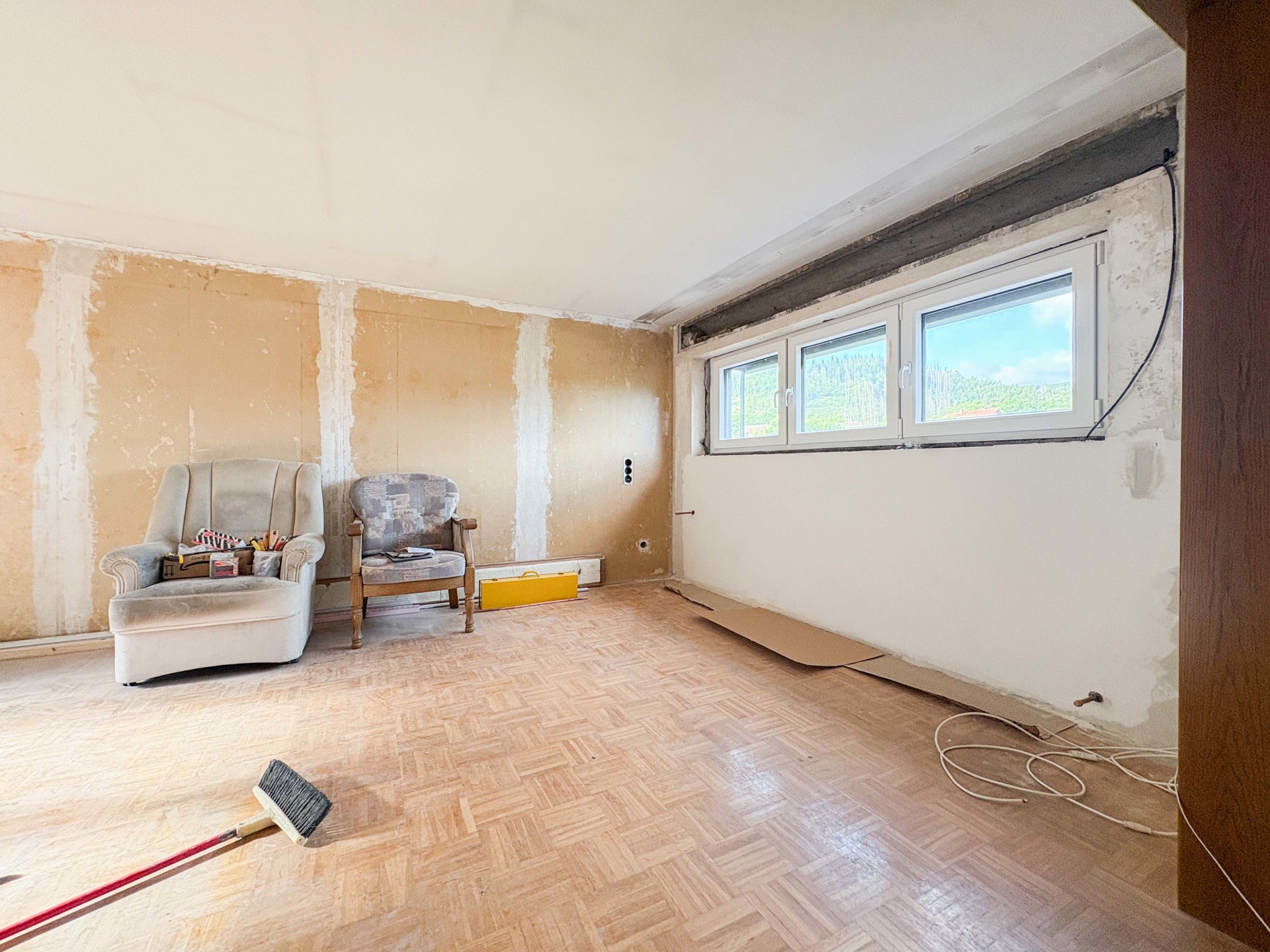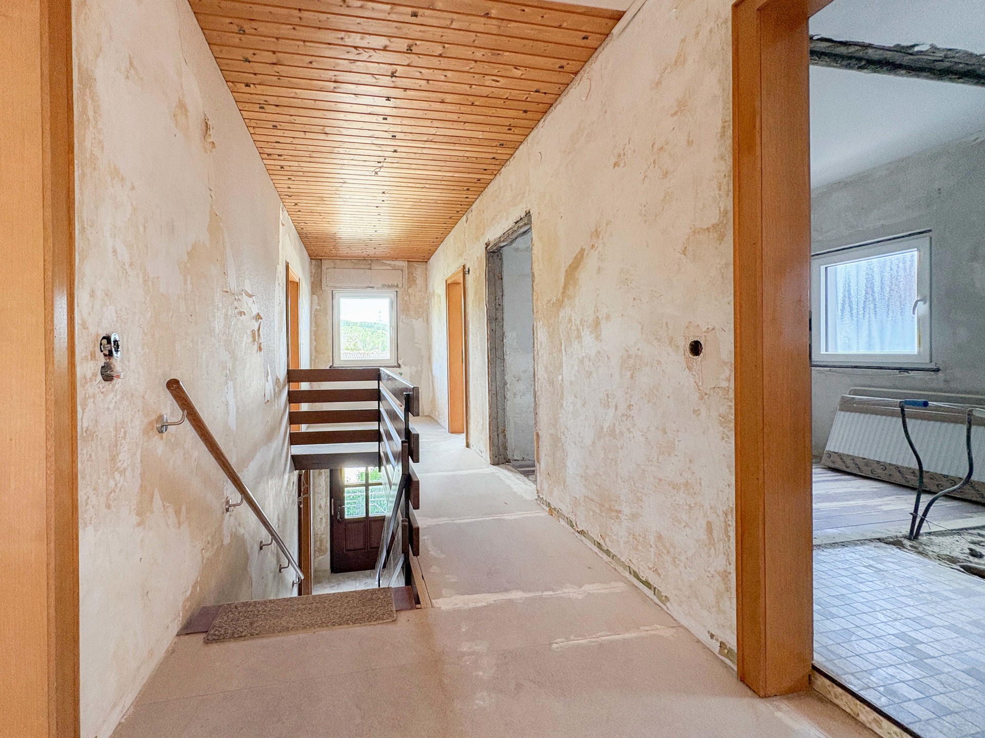 Dieses entkernte Einfamilienhaus in ruhiger Hanglage bietet eine hervorragende Basis für alle, die sich den Traum vom individuell gestalteten Eigenheim erfüllen möchten. Der Innenausbau wurde bereits in Teilen begonnen, sodass erste Schritte in Richtung Modernisierung gemacht sind – gleichzeitig bleibt Ihnen noch ausreichend Raum, um eigene Ideen umzusetzen. Besonders praktisch: Das Badezimmer im Erdgeschoss ist bereits funktionstüchtig und ermöglicht eine Nutzung auch während der weiteren Ausbauarbeiten. Ein besonderes Merkmal des Hauses ist die Hanglage, durch die sich vom Obergeschoss ein direkter Zugang in den terrassenförmig angelegten Garten ergibt. Vom Garten aus genießen Sie einen freien, unverbaubaren Blick auf den Ort – ideal für entspannte Stunden im Grünen.