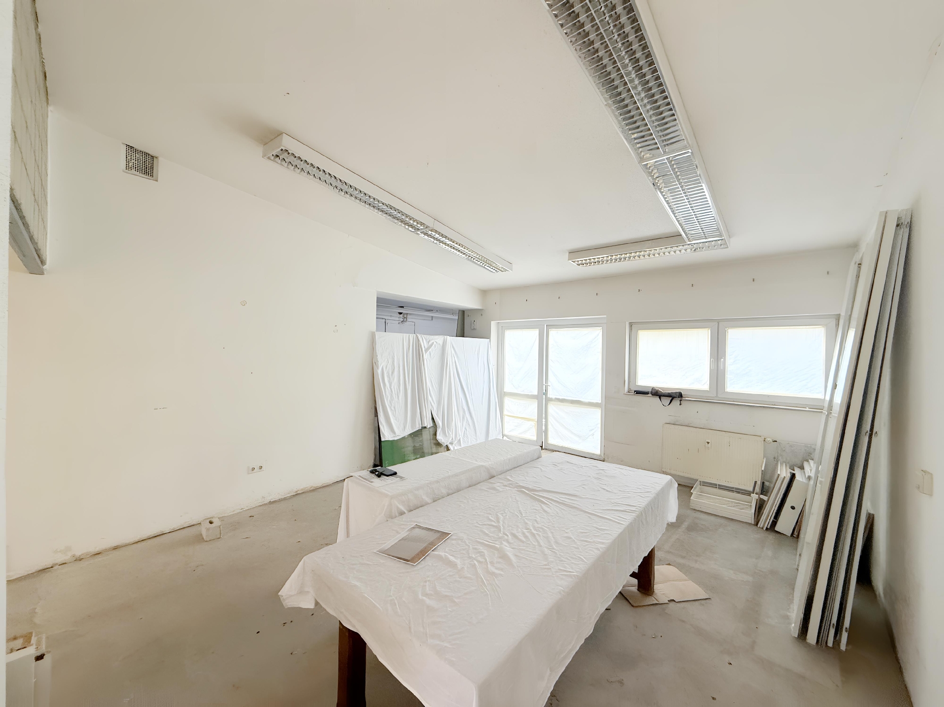 Diese großzügige Gewerbeeinheit im Erdgeschoss eines Wohn- und Geschäftshauses aus dem Jahr 1960 bietet vielseitige Nutzungsmöglichkeiten. Sie ist in zwei separate Einheiten untergliedert, die über einen gemeinschaftlich genutzten, innenliegenden Flur miteinander verbunden sind. Diese Aufteilung eignet sich ideal für Betreiber mit mehreren Geschäftsbereichen oder für Konzepte mit Kunden- und Verwaltungszonen.