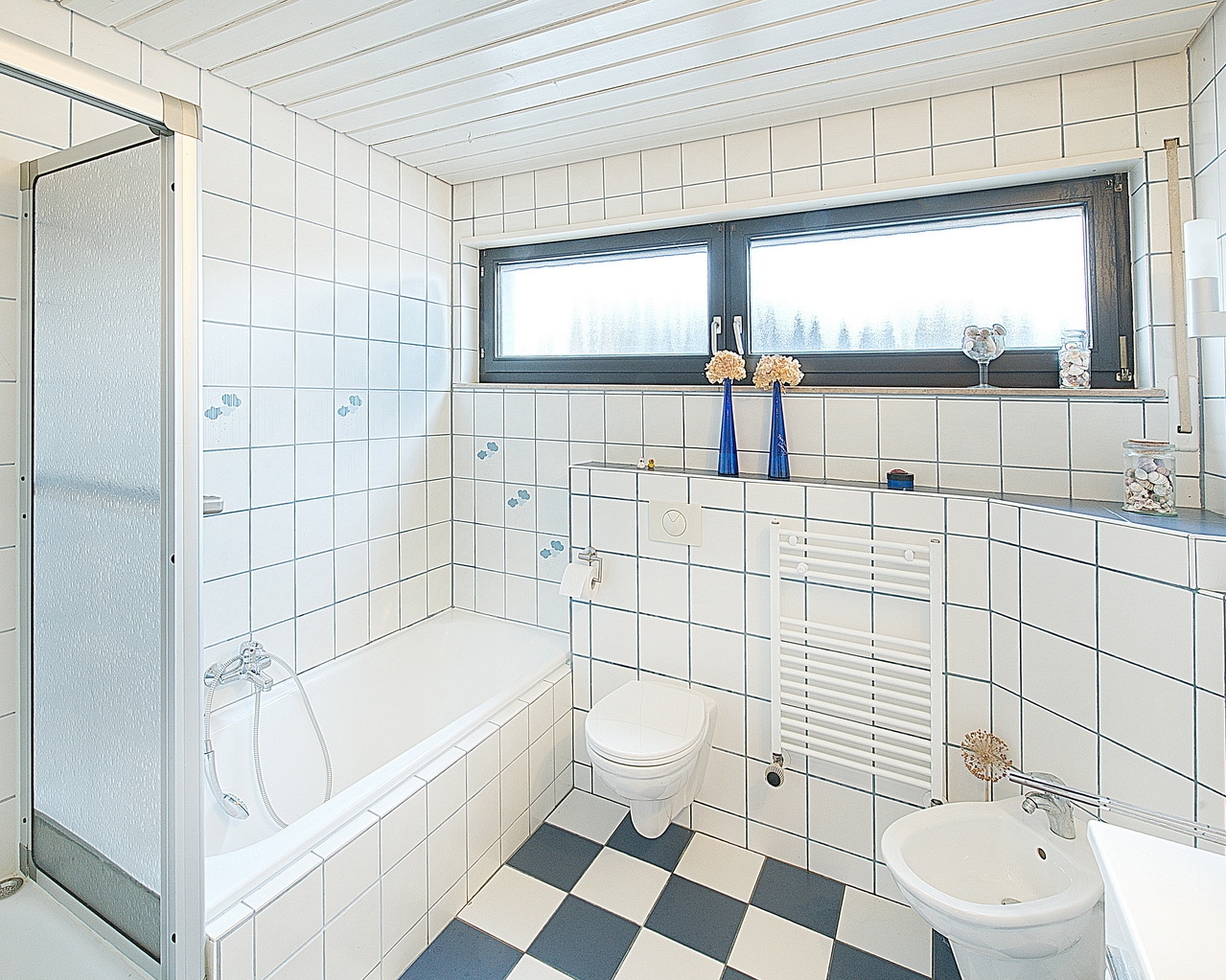 • Badausstattung: Dusche, Badewanne, Fenster im Badezimmer