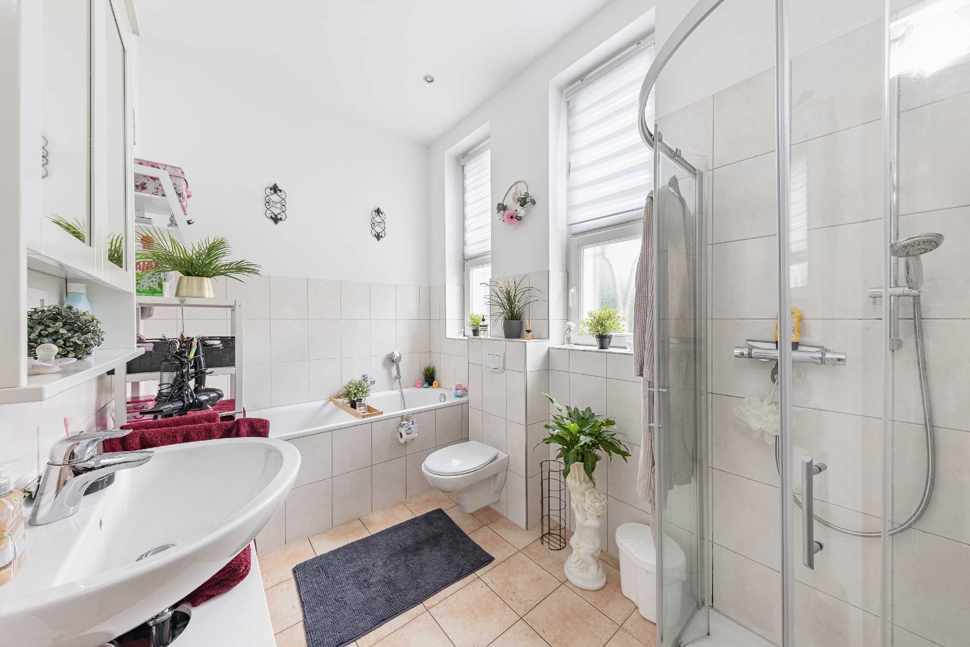 - Badausstattung: Dusche, Badewanne