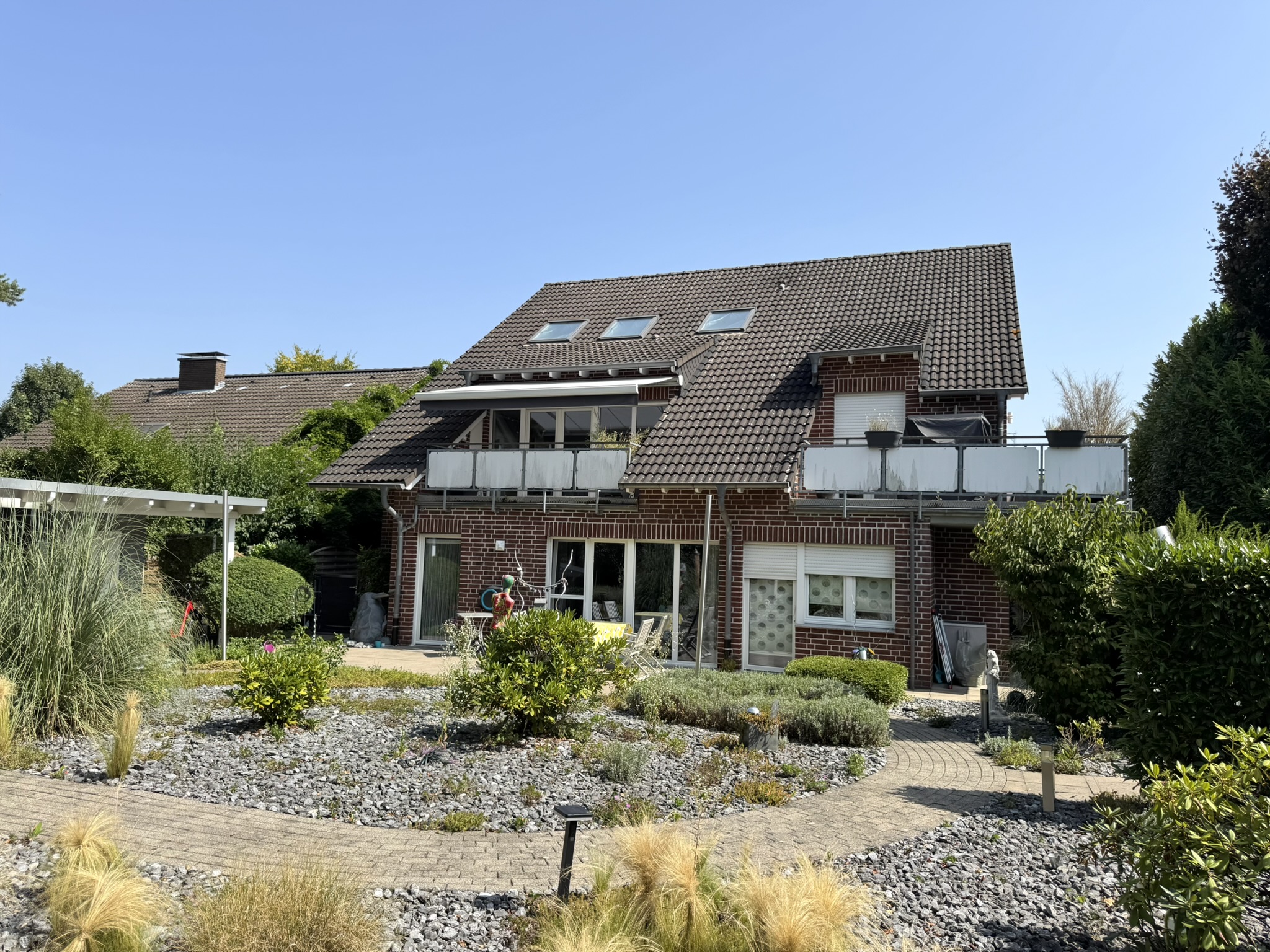 Die schicke, großzügige Erdgeschosswohnung befindet sich in einem freistehenden Vierfamilienhaus. Die Wohnung wurde 2016 von den Eigentümern umfassend modernisiert und präsentiert sich mit einer gehobenen Ausstattung. Herzstück der Wohnung ist der großzügige Wohn-/Essbereich mit direktem Zugang zur sonnigen Südwest-Terrasse und dem weitläufigen, liebevoll angelegten Garten. Hier lädt ein Gartenhaus mit Pergola zu entspannten Stunden im Freien ein. Neben dem geräumigen Schlafzimmer steht ein weiteres Zimmer zur Verfügung, das sich ideal als Kinder- oder Arbeitszimmer eignet. Die separate, modern ausgestattete Wohnküche, eine einladende Diele, ein stilvolles Badezimmer, ein Gäste-WC sowie ein praktischer Hauswirtschaftsraum runden das Raumangebot ab. Alle Wohnbereiche sind barrierefrei gestaltet und bieten ein komfortables Wohngefühl. Zur Wohnung gehört zudem eine eigene Garage direkt am Haus. Dank der ruhigen Lage, der hellen Räume und des privaten Gartens ist diese Immobilie sowohl für Paare und Familien als auch als Altersruhesitz eine ideale Wahl.