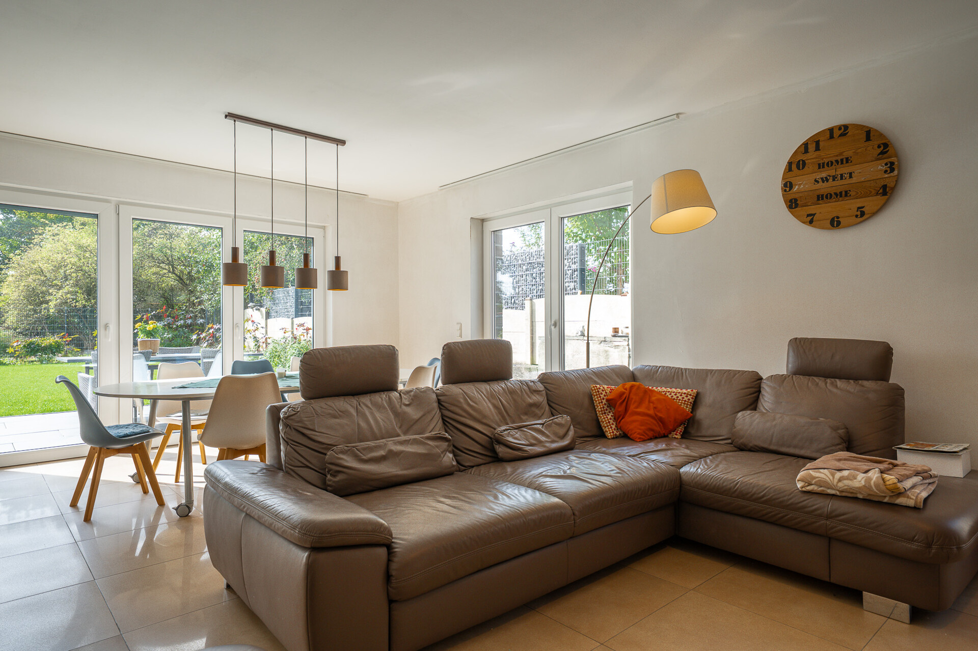 Die sonnige Südterrasse öffnet sich direkt zum weitläufigen Garten und bietet ein privates Refugium für Entspannung, Freizeit und gesellige Stunden im Freien. Der Garten lädt zu vielfältiger Nutzung ein, sei es für Spiel, Erholung oder Gartenprojekte, und ergänzt das Wohngefühl des Hauses auf perfekte Weise.
